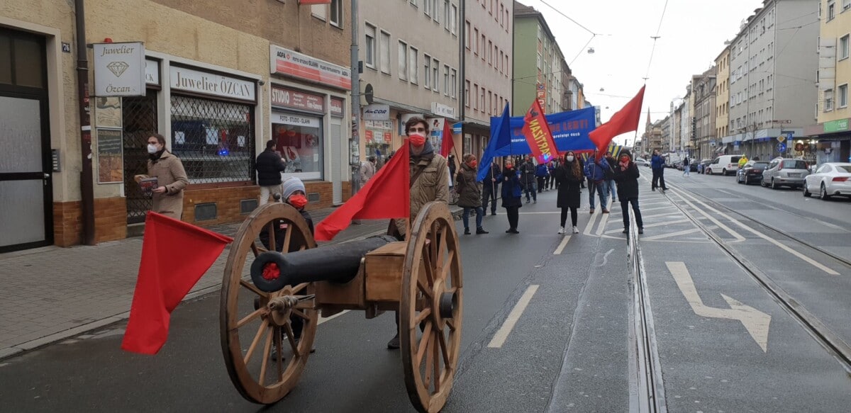 Nürnberg Operası önünde başlayan etkinlik, yabancı ve göçmen emekçilerin yoğun yaşadığı Südstadt (Güney Kent) caddelerinde haykırılan sloganlar Türkçe ve Almanca çalınan devrimci marşlarla devam etti.