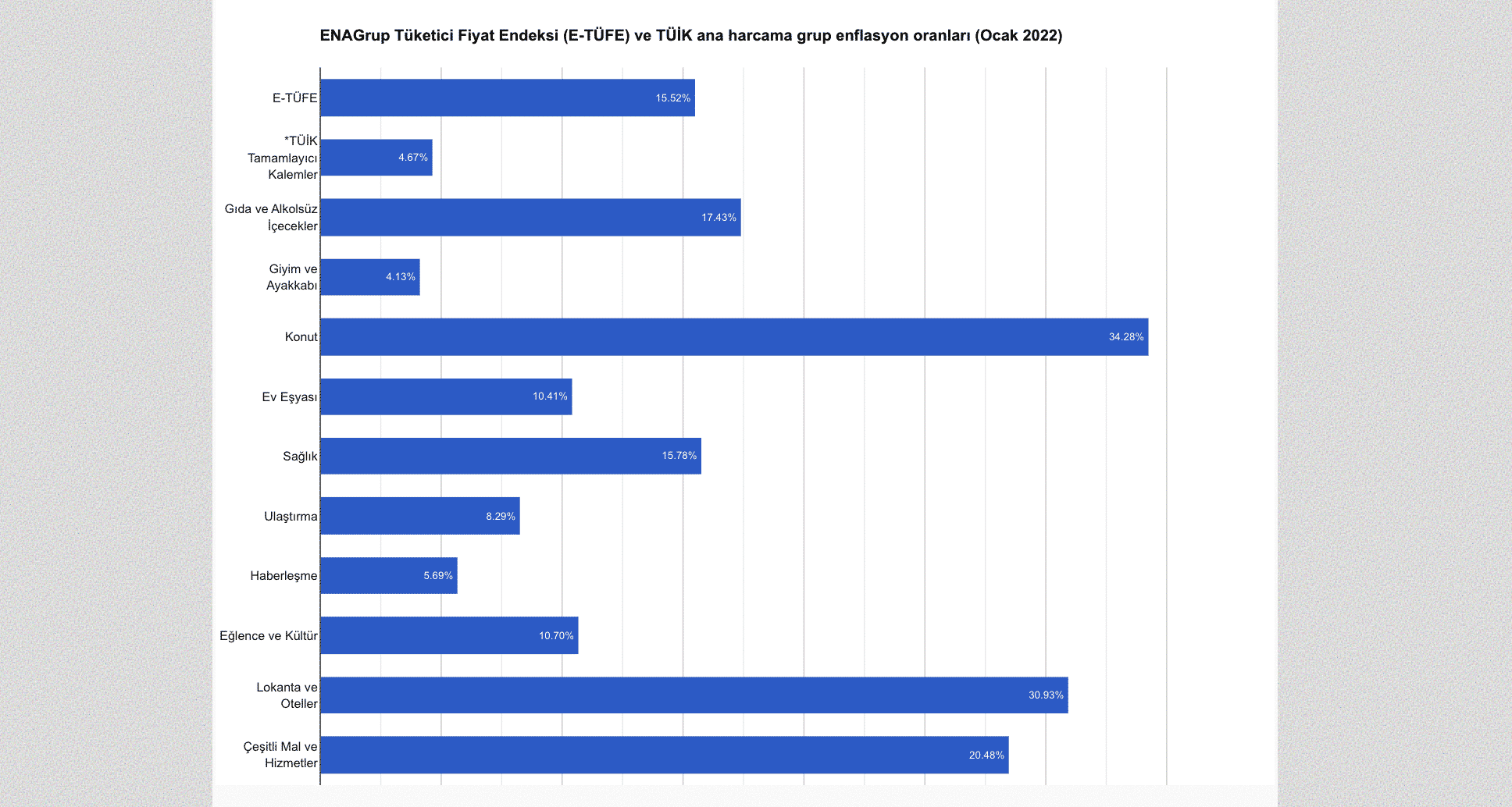 Bağımsız iktisatçılardan oluşan Enflasyon Araştırma Grubu (ENAGrup) ise TÜİK’in yüzde olarak açıkladığı yıllık enflasyonun aslında yüzde 114,87 olduğunu bildirdi. ENAG enflasyonun ocak ayında yüzde 15,52 arttığını belirtti.