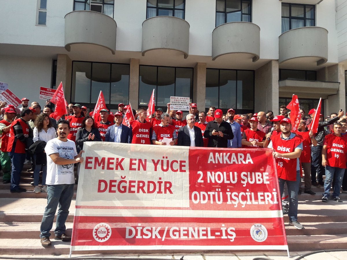 HABER MERKEZİ- ODTÜ’de çalışan DİSK Genel İş üyesi işçiler, bugün bir eylem yaparak AKP’nin kadro oyunu sonrası kaybettikleri haklarını talep ettiler.