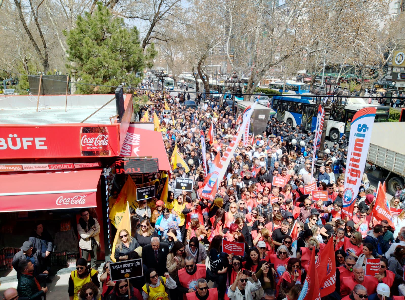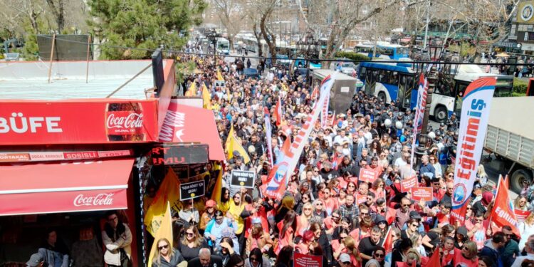 Eğitim sendikaları yurt genelinde iş bırakma kararı alırken Ankara’da Eğitim Sen ve Eğitim-İş şubelerinin çağrısıyla iş bırakan öğretmenler Millî Eğitim Bakanlığı’na yürüdü. “Okullarımızı şiddete teslim etmeyeceğiz” diyen öğretmenler Yüksel Caddesi’nden Millî Eğitim Bakanlığı’na yaptıkları kitlesel yürüyüşte okullarda şiddetin yapısal bir sorun haline geldiğine dikkat çekti. Öğretmenler, Öğretmenlik Meslek Kanunu’nun şiddeti engellemediğini, Millî Eğitim Bakanlığı’nın da bu şiddetten sorumlu olduğunu dile getirdi. Öğretmenler Milli Eğitim Bakanı Yusuf Tekin’i de istifaya çağırdı.