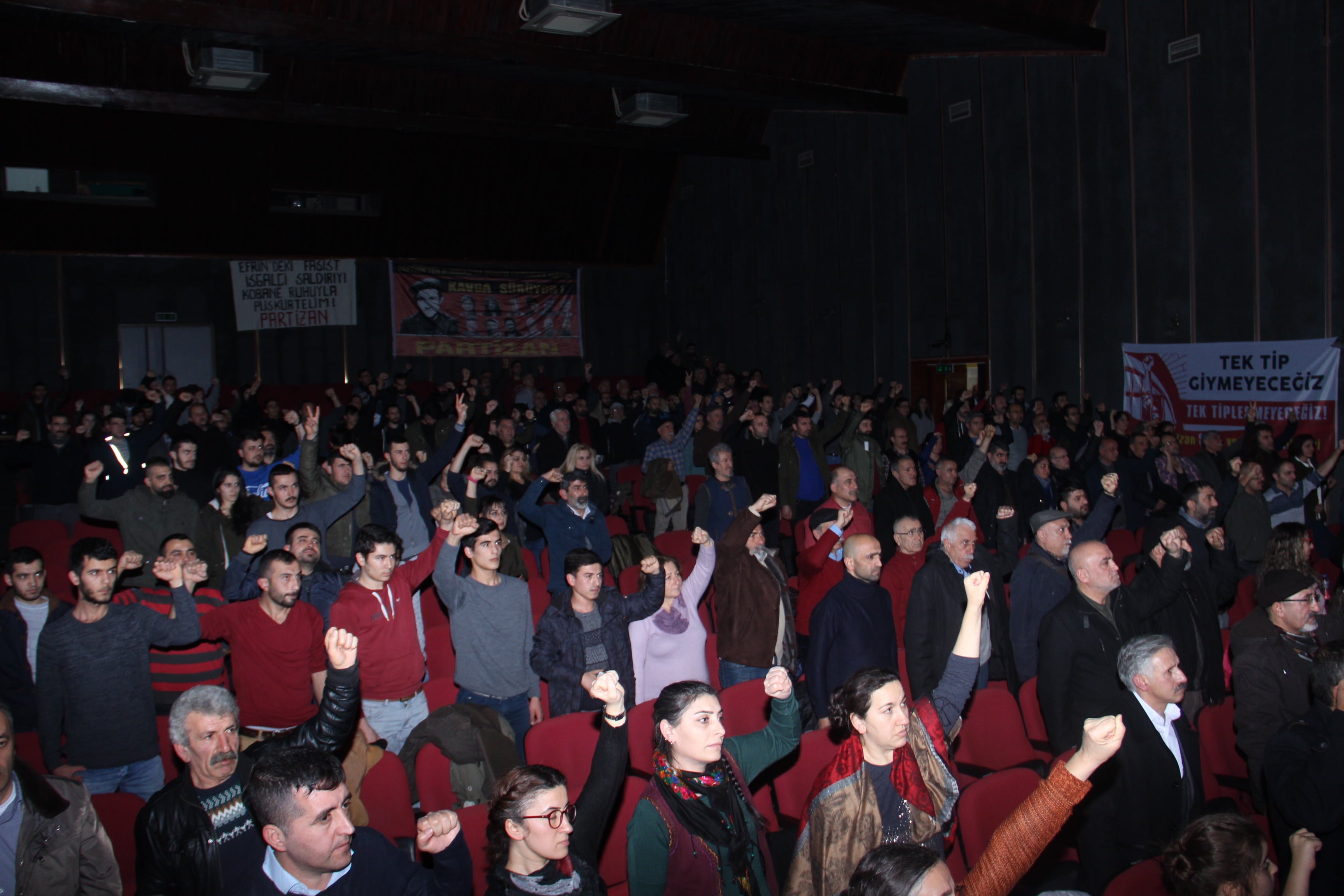 Devamında; “Egemenlerin saldırısı sırça köşklerinden olma korkusundan başka bir şey değildir. Bizler bugün şehitlerimizi anmaya, onların bıraktığı yerden mücadeleyi sürdürmeye gelenler olarak, onların ideallerini yaşatmak zorundayız. Bugün hapishanelerde uygulanmak istenen Tek Tip Elbise, tecrit ve sürgün sevklere mutlak içeriden bir karşı koyuş ve direniş örgütlenecektir. Bizler dışarda olanlar hapishanelerdeki bu mücadeleyi büyütmeliyiz. Bizler Muharrem Horoz’un ve Nergis’in gözlerini kırpmadan ölüme yürüyen cüretlerine tanıklık ettik. Yine biz 90 gün faşizmin işkencehanelerinde ser verip sır vermeyen İbrahim’den öğrendik. “O duvar, duvarlarınız bize vız gelir” diyerek özgürlük eylemi gerçekleştiren Mehmet Zeki Şerit’tin anaları ve yoldaşlarıyız. Bizim tarihimiz ser verip sır vermeme ve faşizme karşı dimdik durma ile yazılmıştır” ifadeleri kullanıldı. PŞTA konuşması “Tek Tipe Geçit Vermeyeceğiz”, “Her Yer Efrin Her Yer Direniş”, “Halk Savaşçıları Ölümsüzdür” denilerek son buldu.