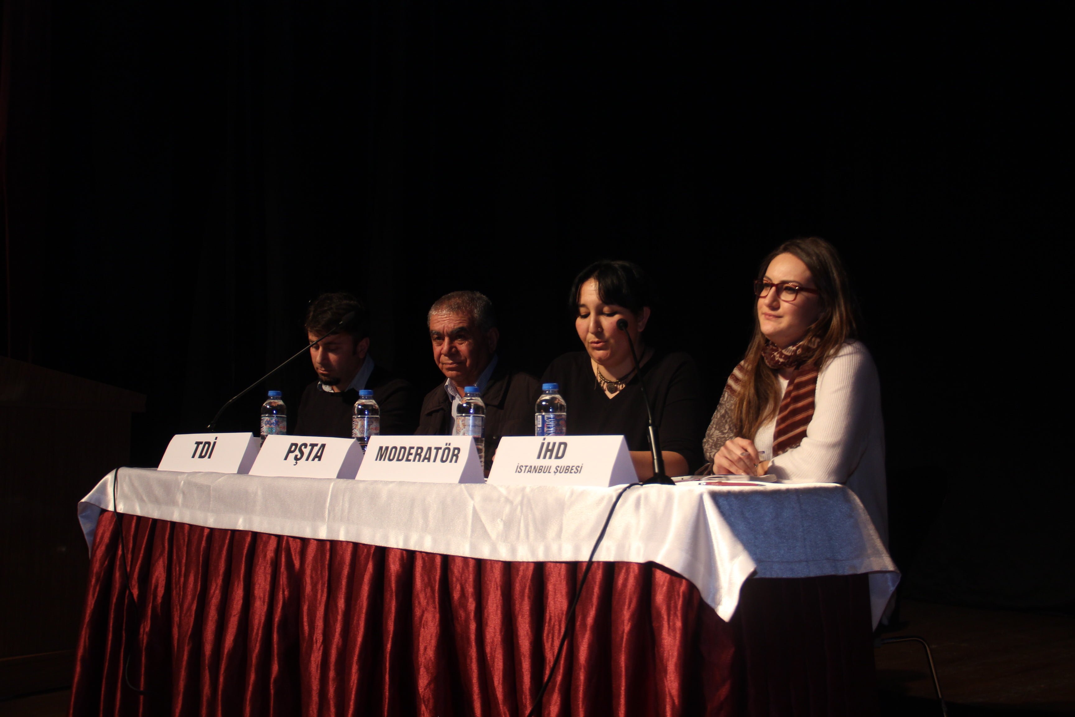 Sinevizyon gösterimi sonrası, TTE saldırısında karşı tutsaklarla dayanışmanın konu edildiği panele geçildi. Her yıl yapılan anmadan farklı olarak bu yıl TTE saldırısının fiili olarak uygulanmaya başlandığı belirtilerek panel ve bilgilendirmelerin bundan sonraki mücadeleye katkı yapacağı vurgulandı. Panelde ilk olarak sözü İHD İstanbul Şubesi’nden Av. Nagihan Alçil aldı. OHAL sonrası hapishanelerdeki hak ihlallerinin artarak sürdüğünü ifade eden Alçil, iletişim cezaları ile başlayan hak ihlallerinin gün geçtikçe daha vahim bir hal aldığının altını çizdi.