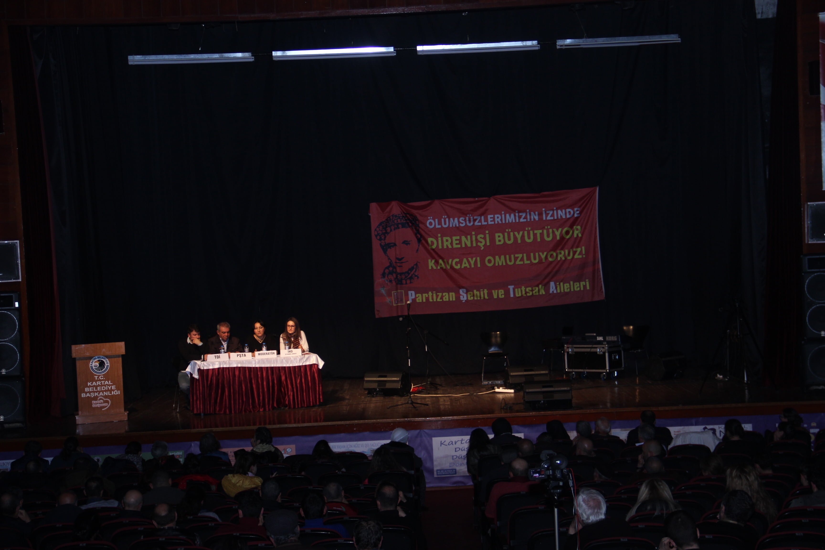 İSTANBUL- Partizan Şehit ve Tutsak Aileleri’nin (PŞTA) “Kavgada Yitirdiklerimizi Anıyor, Tutsaklarla Dayanışmayı Büyütüyoruz” şiarıyla düzenlediği Devrim ve Komünizm şehitlerini anma etkinliği Kartal Hasan Ali Yücel Kültür Merkezi’nde gerçekleşti. Coşku ve mücadeleyi büyütme çağrısının ön plana çıktığı anma etkinliği devrim ve komünizm mücadelesinde ölümsüzleşenler için yapılan bir dakikalık saygı duruşuyla başladı. Saygı duruşu boyunca Proletarya Partisi şehitlerinin fotoğrafları yansıtıldı. Saygı duruşunun ardından “Devrim Şehitleri Ölümsüzdür”, “Gerillalar Ölmez, Yaşasın Halk Savaşı” sloganları hep bir ağızdan haykırıldı.