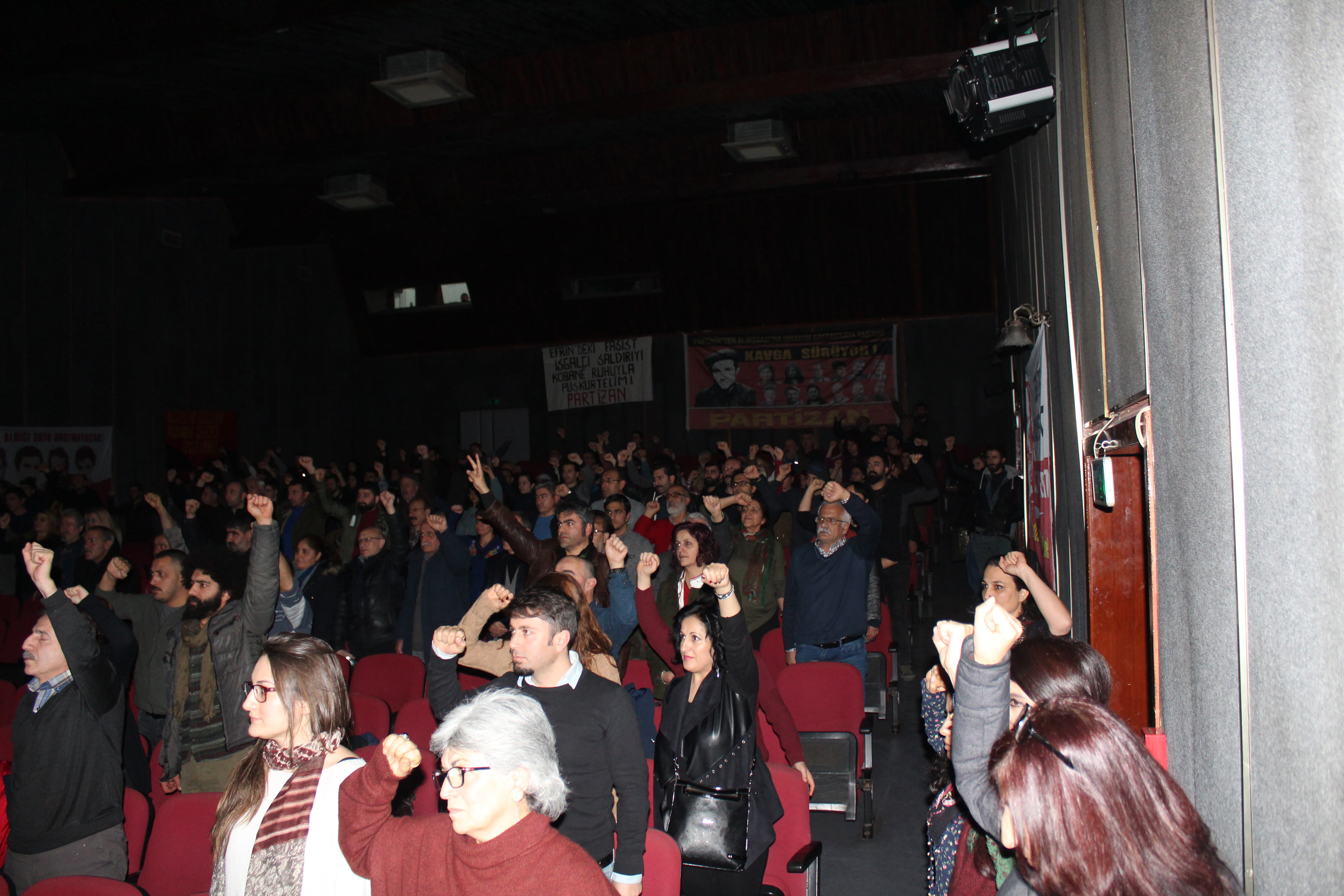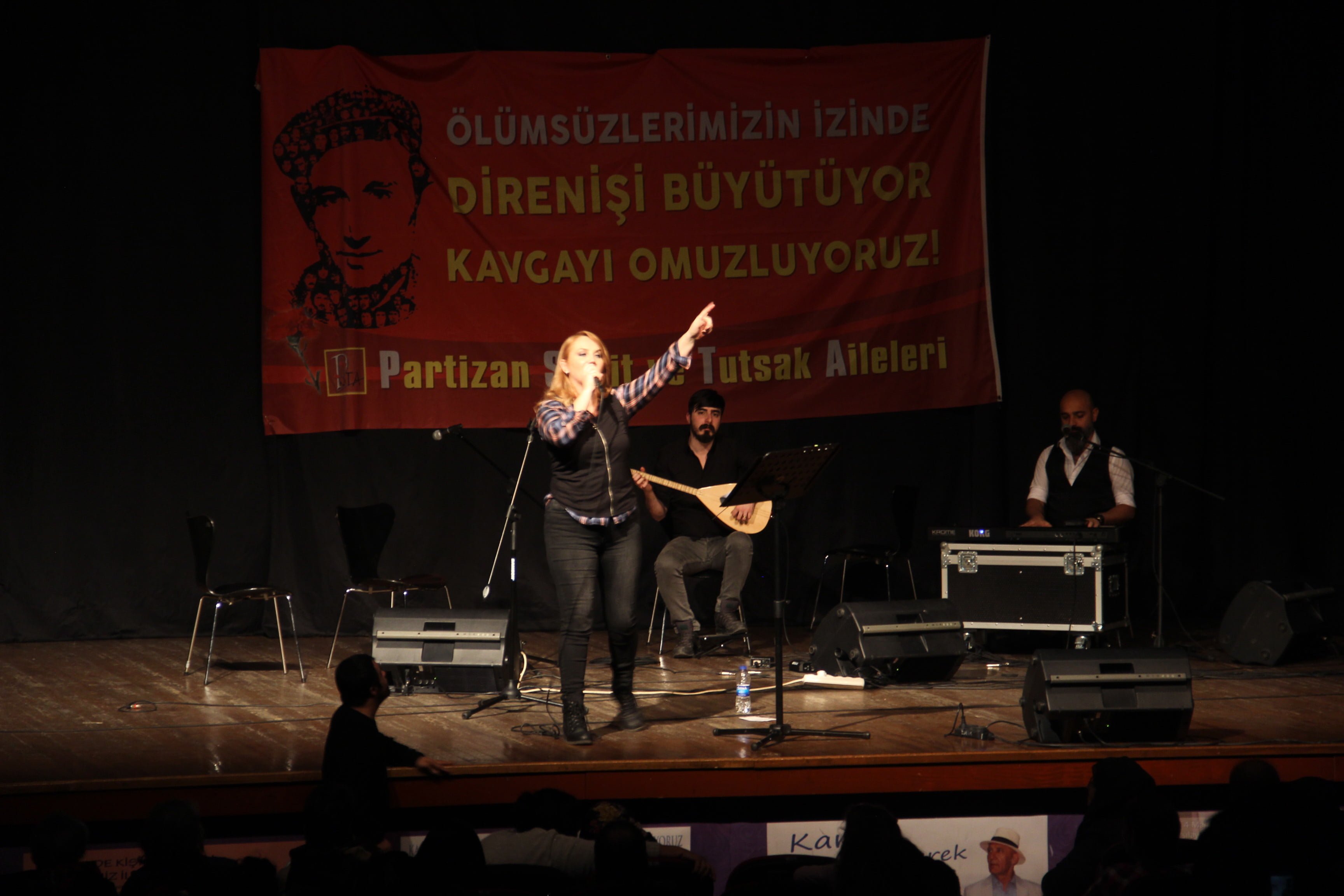 Koma Gulen Xerzan’ın sahneden ayrılmasının ardından Partizan adına yapılan konuşmaya geçildi. Konuşmada; “Onlarca yüzlerce yoldaşımız sıcakkanlılıkla, halkına sevgisiyle, ruhlarında ki cömertlikleri ve ömürleriyle demokratik halk devrimi yolunda can verip ideallerini bizlere emanet ederek toprağa düştüler. Onların emanetleri özgür yarınlara duydukları özlemdir, sınıf sınırsız bir dünya hayalidir. Onların emanetleri can bedeli koruyup, kolladıkları, büyüttükleri devrime olan inançtır. Onların emanetleri halkımıza duyulan onulmaz sevgidir. Ve onların emanetleri yoldaşlarına olan sarsılmaz güvenleridir. Şehitlerimizin emanetlerini, özlemlerini, hayallerini, inançlarını, sevgilerini ve güvenlerini bu soluksuz mücadeleyi zaferle taçlandırma andımızı ailelerimiz ve dostlarımız huzurunda yineliyoruz” ifadelerine yer verildi. Faşizmin topyekûn saldırı politikalarının girdiği siyasal kriz olduğu vurgulanarak şöyle devam edildi: “15 Temmuz darbe girişiminin ardından OHAL, KHK aracılığıyla halkın öfkesinin kontrol altına alınmaya çalıştığı böylesi tarihi bir süreçte düşmana korku olmaya korkularını büyütmeye devam etmeliyiz. Bu süreçte binlerce işçi ve emekçinin ihraç edildiği, aydın araştırmacı, yazarların tutuklandığı, binlerce insanımızın gözaltı ve tutuklama terörüyle hapishanelere doldurulduğu bir dönemden geçiyoruz. Tutuklamalarla halka gözdağı verildiği bu dönem devletin savaş ve zulüm politikalarıyla sürdürülmeye çalışılmaktadır. Efrin’e yönelik işgal girişimi bu kapsamda devletin krizinin boyutunu gösteren bir nitelik taşımaktadır. S. Kürdistan’ın da Kürtlerin kazanımlarına yönelik açılan bu savaş Türk hakim sınıflarının Kürt düşmanlığını bir kez daha ortaya koymuştur. Kendi sınırları içinde tahammül edemediği Kürtlerin Suriye de ki kazanımları devletin korkulu rüyası haline gelmiş sınırlarını aşarak Kürtlerle savaşı sınır ötesine taşımıştır. Emperyalist ağababalarının da kontrolünde ve onayıyla başlayan bu savaş Efrin halkının direnişiyle karşılığını bulmuştur/bulacaktır” denildi.