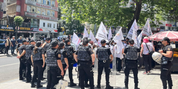 Yürüyüşü bugün Ankara’ya ulaştıran eğitim emekçileri, Kuğulu Park’tan sendika binasına doğru yürüyüşe geçti. Ziya Gökalp Caddesi’nde polis tarafından önü kesilen eğitim emekçileri, uzun süre polis ablukasında tutuldu. Abluka içinden seslenen Özel Sektör Öğretmenleri Sendikası MYK üyesi Eren Edebali, “Burada 30’a yakın öğretmen abluka altındayız. Arkadaşlarımız sendika önünde bekliyor, eğitim sendikaları bekliyor. Bu demokratik, meşru bir yürüyüş. Taleplerimiz ortada. Verilen ama tutulmayan sözler var. Öğretmenlik mesleğini yaşatmak istiyoruz. Bu muameleyi hak etmiyoruz. Tüm kamuoyunu, halkımızı bize sahip çıkmaya çağırıyoruz. Bu öğretmenlik mesleğinin yaşayıp yaşamayacağı bir an. Milli Eğitim Komisyonuna sesleniyoruz bugün gerekli imza toplandı. Perşembe günü Milli Eğitim Komisyonu toplanacak. Taleplerimizi siyasi parti talepleri olarak algılamayın. Talepler, öğretmenlerin talepleri. Yaz maaşını alamayan, sigorta pirimi ödenmeyen, düşük ücreteler çalıştırılan, patronlara teslim edilen bir eğitim alanında kölelik koşullarında çalışan öğretmenlerin talebi. Bir eğitim talebi olarak görün. Bu işi çözün. Bugün burada istemediğimiz, bizim hak etmediğimiz şeyler yaşanabilir. Bunu istemiyoruz sorumluluk alın, rica ediyoruz” çağrısı yaptı.