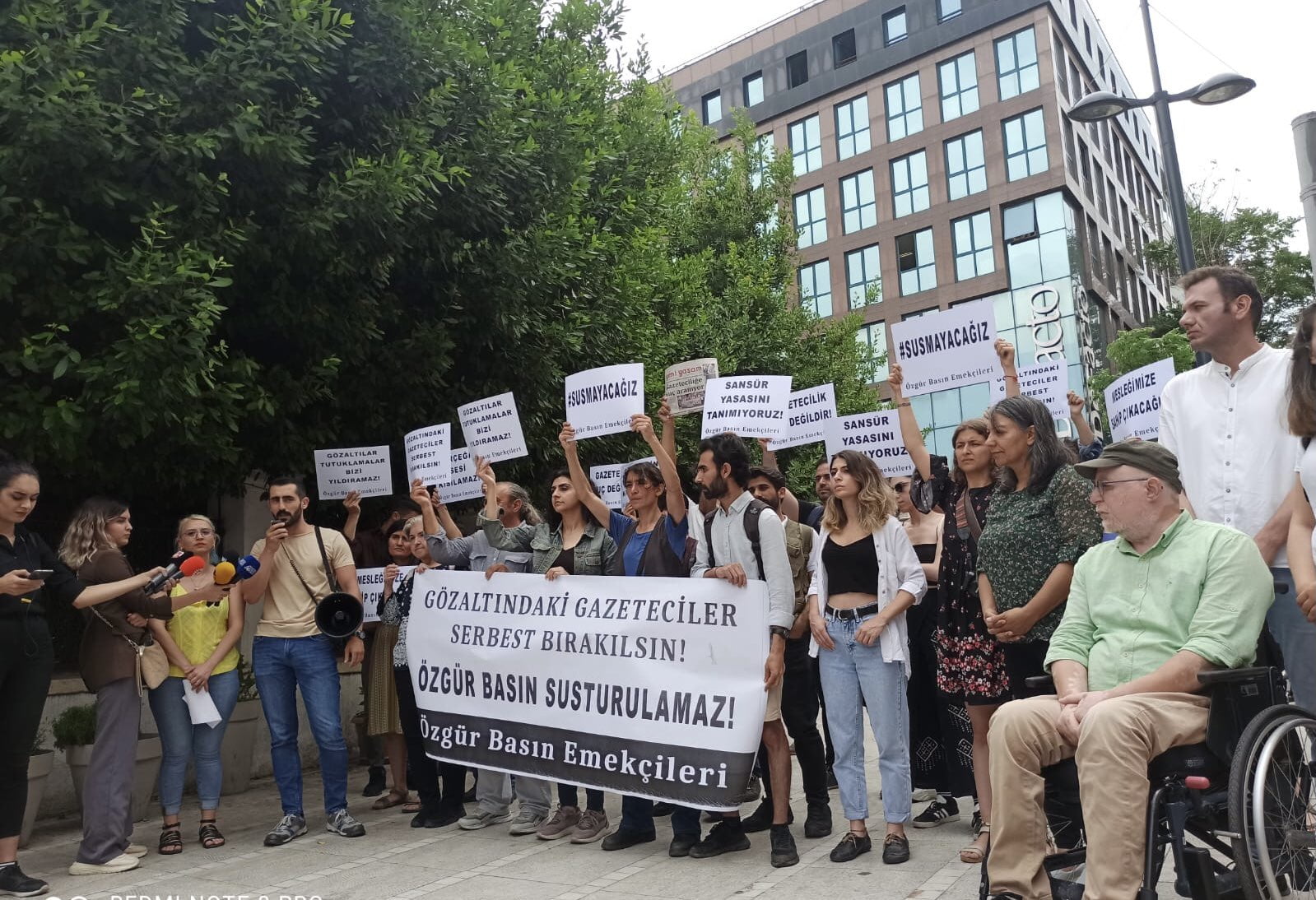 Açıklamada “Gazetecilik Yapmak Suç Değil Onurdur” , “Gözaltılar Tutuklamalar Baskılar Bizi Yıldıramaz”, “Özgür Basın Susturulamaz” sloganları atıldı.