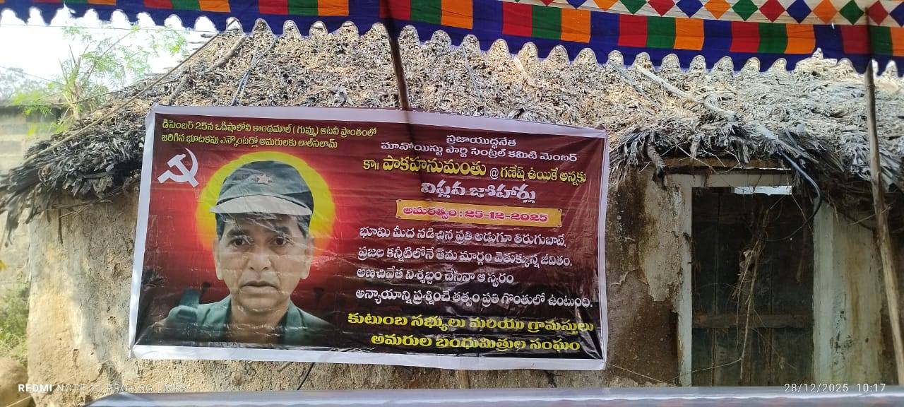25 Aralık günü HKP (Maoist) MK Üyesi Paka Hanumanthu’nun da aralarında olduğu 6 Maoist gerici Hint devletinin saldırısında ölümsüzleşti. Bugün Telangana eyaletine bağlı Nalgonda ilçesindeki Paka Hanumanthu’nun köyü Pullemla’da cenaze töreni gerçekleştirildi. Binlerce kişi kızıl bayraklarla yürüyüş düzenleyerek törenin yapılacağı alana geçti. Paka Hanumanthu’nun tabutu “Ganesh Ölümsüzdür” sloganıyla halkın omuzlarında taşındı.