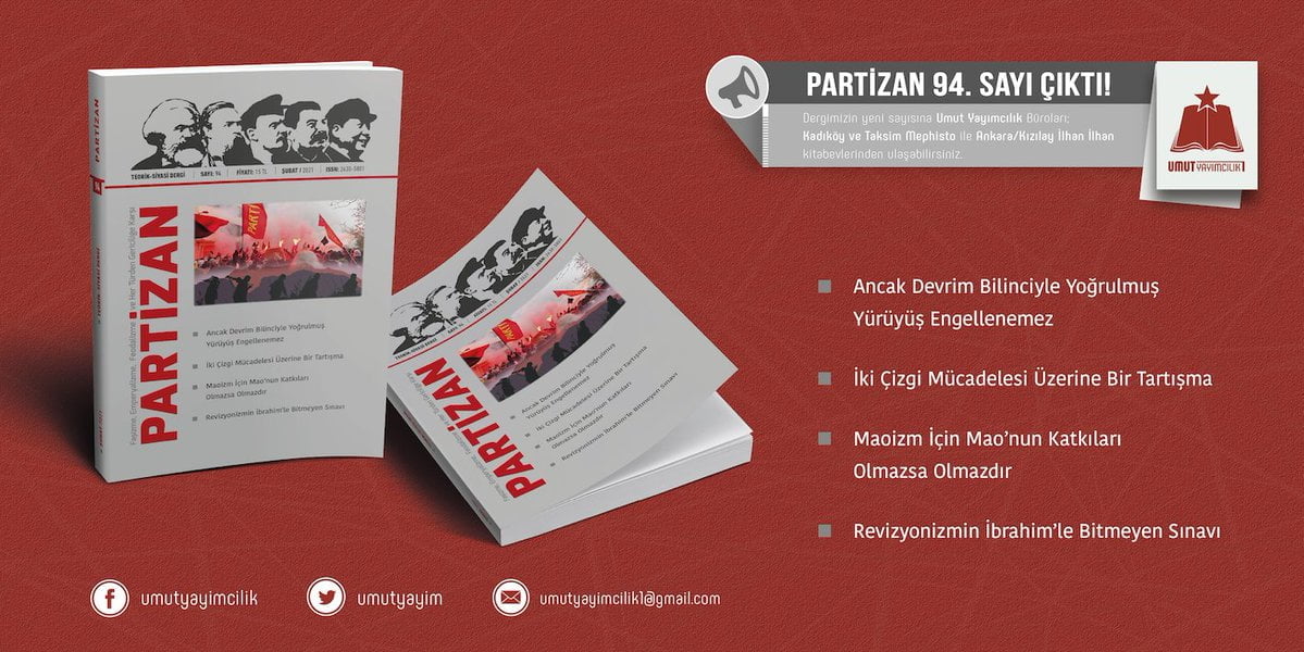 HABER MERKEZİ- Partizan Dergisi’nin 94. sayısı çıktı. Felsefi tartışmalar ve polemik ağırlıklı yazılardan oluşan Partizan Dergisi’nin yeni sayısına Umut Yayımcılık büroları, Mephisto ve Ankara İlhan İlhan kitabevlerinden ulaşabilirsiniz.
