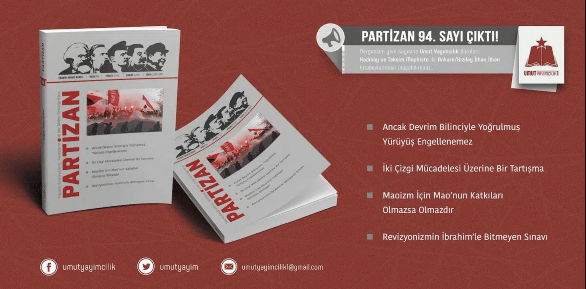Şubat 2021 yılında çıkan Partizan dergisinin 94. sayısında başlıklar şu şekilde: