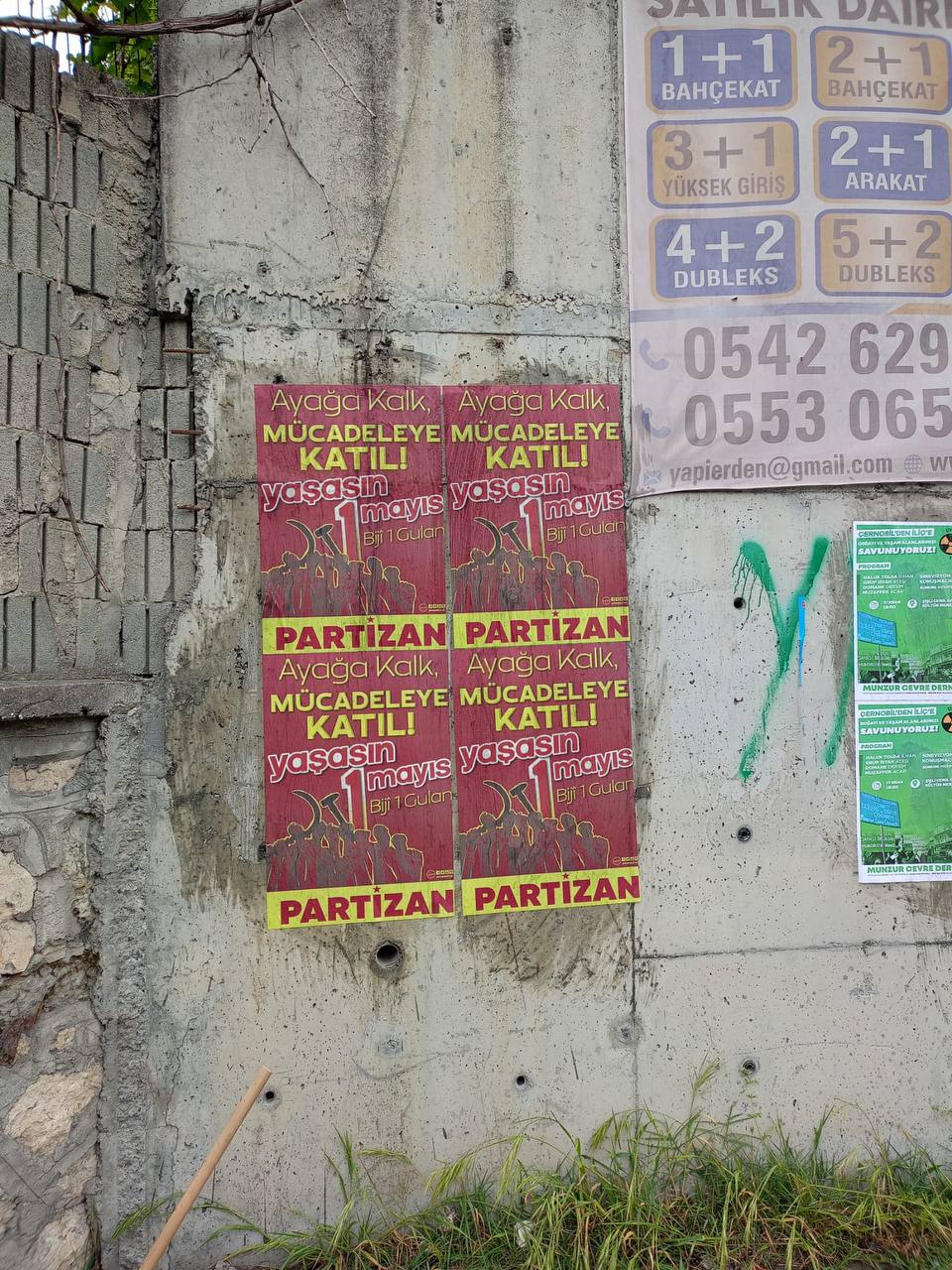 Partizan İstanbul’un işçi ve emekçi olarak en yoğun ilçelerinden olan Esenyurt’ta bildiri, afiş ve yazılama çalışmaları yaparak kitleleri 1 Mayıs’ı kutlamaya çağırdı. Esenyurt Kıraç’ta Kuruçeşme, İstiklal, Pınar, Örnek mahallerinde yoğun afiş çalışması yaptı. Ayrıca İstiklal Mahallesi’nde kurulan semt pazarından bildiri dağıtımı yaparak 1 Mayıs coşkusunu büyütmek için harekete geçmeye ve örgütlenmeye çağırdı.
