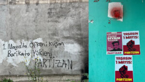 Partizan’ın Gülsuyu Mahallesi’nde yaptığı 1 Mayıs çalışmalarının ardından polis mahalleyi adeta ablukaya alarak “afiş avına” çıktı. Polis mahallenin birçok yapılan afişleri yırttı, yazılamaları karalayarak 1 Mayıs çağrılarını engellemeye çalıştı. Partizan okurları polisin “afiş saldırısına” rağmen çalışmalarına devam ediyor. Partizan yırtılan afişlerin, karalanan yazılamaların yerine tekrardan çalışmalarını sürdürdü.