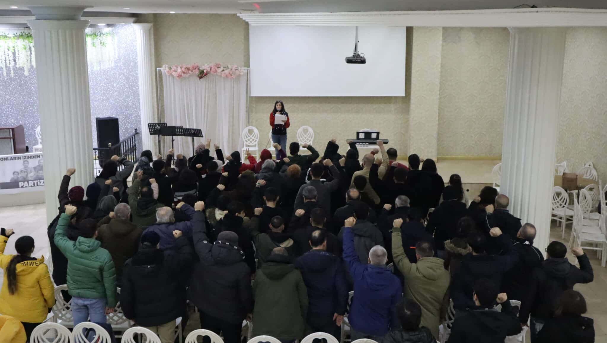 Partizan Şehit ve Tutsak Aileleri konuşma yaptı. Konuşmada “Çocuklarımız, insanlığın kurtuluşu davasının sorumluluklarını sırtlarına almışken biz onların sadece anne ve babalarıydık, aileleriydik. Sonra çocuklarımız zulme uğrarken, işkence görürken, faşist devletin azgın saldırılarında katledilirken çocuklarımızı savunmaya başladık ve bu mücadele içinde öğrendik ki onların düşüncelerini savunmadan ne gerçek anlamda onları ne de kendimizi savunabilirdik. Biz Partizan Şehit ve Tutsak Aileleri olarak bu bilinçle örgütlendik.” denildi.