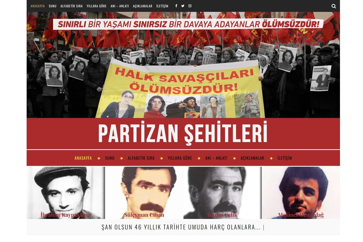 Devrim yolculuğuna Türkiye ve Türkiye Kürdistanı topraklarından kan can katan, sırtlarında ezilenlerin umudunu taşıyan, sınıfsal öfkeyi proleter bilinçle yoğurup can bedeli mücadeleye atılan, zorlu yollardan, dar patikalardan zirvelere yürüyen gerillaları, halk savaşçıları, parti militanlarını, komünist kadroları, sonsuzluğa uğurladığımız devrimcileri her an mücadelemizde yaşatma ve onların bizlere bıraktıkları emaneti ve kavga bayrağını yere düşürmeme görevine, katkı olması amacı ve sorumluluğuyla Partizan şehit web sitesini açıyoruz.