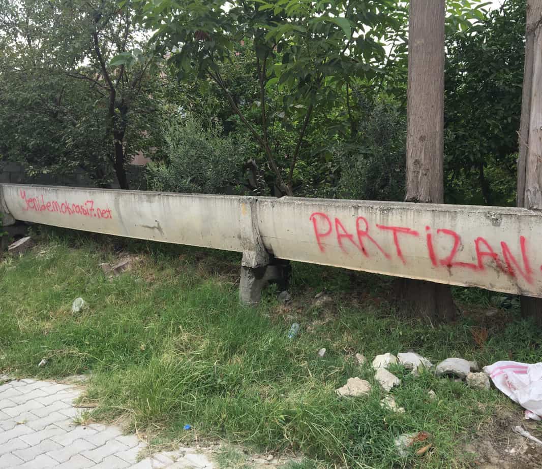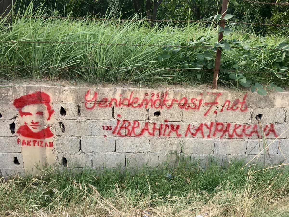 Komünist önder İbrahim Kaypakkaya’nın silüetinin yer aldığı yazılama çalışmaları gerçekleştiren Partizan okurları, Yeni Demokrasi Gazetesi’ne yönelik sansür girişimlerine karşı sahiplenme çağrısı yaptı.