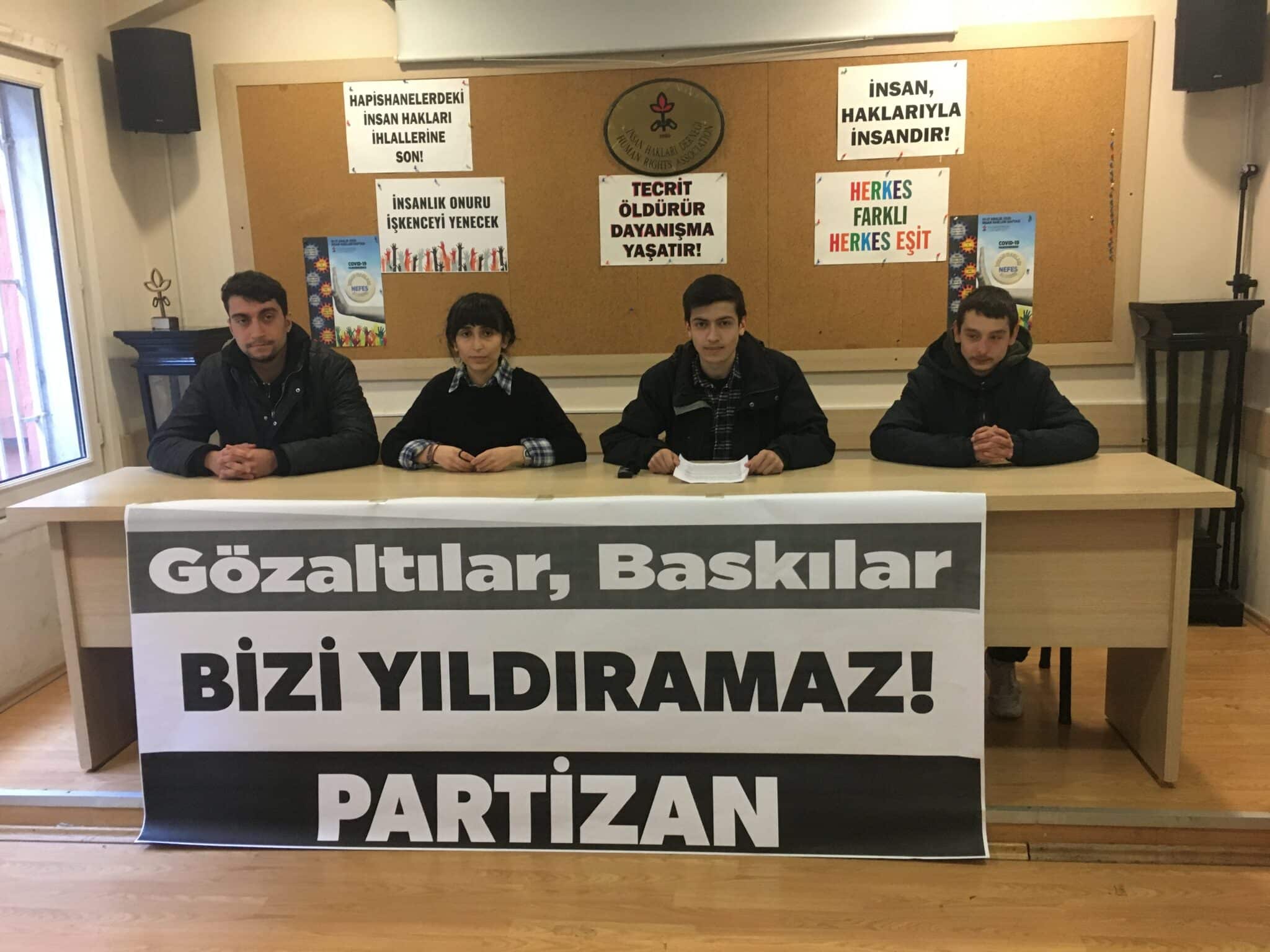 Partizan adına yapılan basın açıklamasında “Son dönemde hak gaspları, baskı, gözaltı, işkence ve bir bütün yaşanan saldırılar tırmanmıştır. En demokratik taleplerin dile getirilmesi dahi yasaklanmıştır. Öyle ki devrimcilerin, demokratların, halkın hak arama mücadelesini engellemek için türlü baskı ve yasaklar icat edilmektedir. Tüm bu keyfi saldırılar nedensiz değildir.” denildi.
