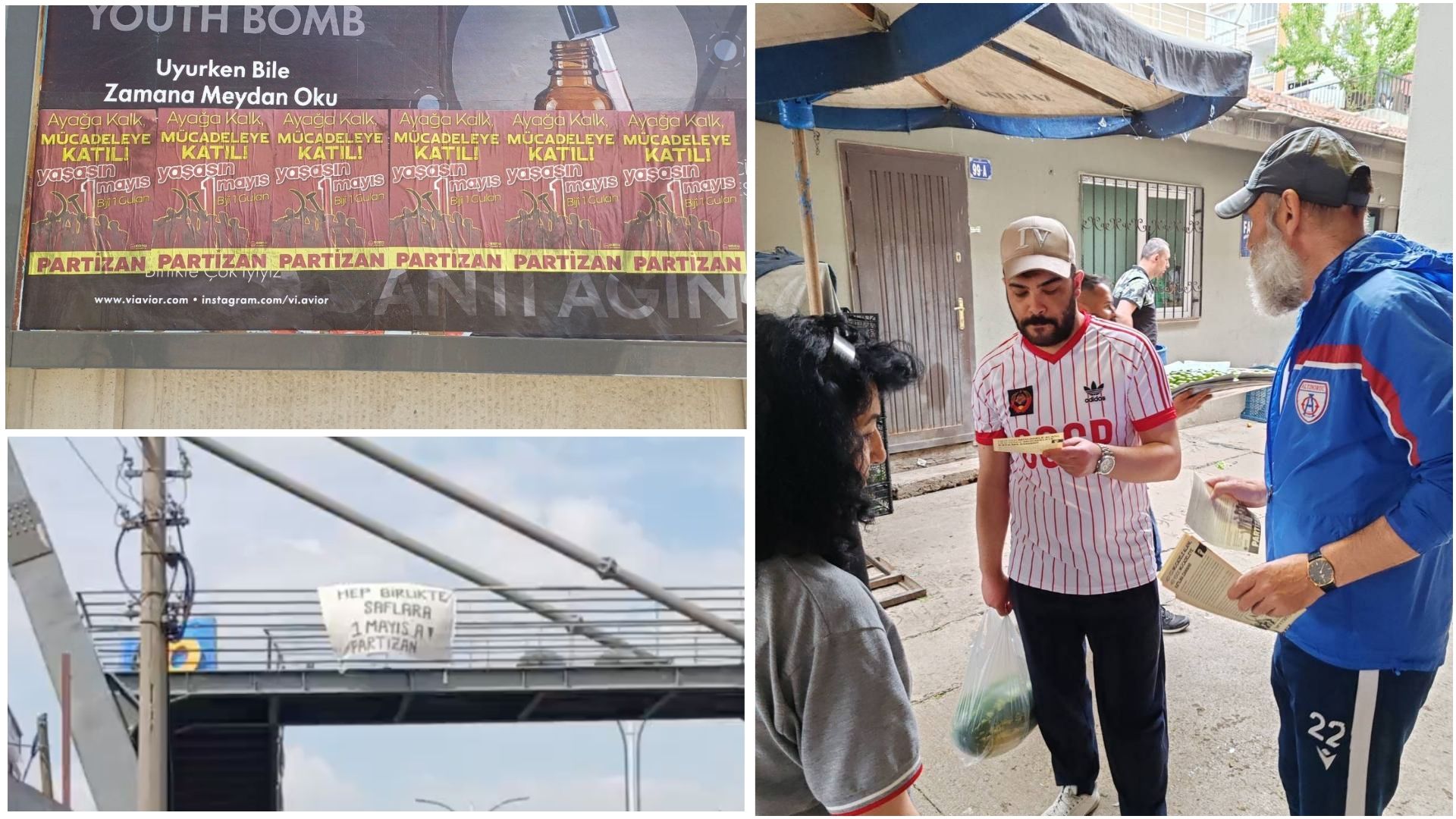 Halkapınar Metro İstasyonu çıkışında bildiri dağıtımı yapan Partizan okurları halkı 1 Mayıs’a çağırdı. Partizan önlüklerindeki İbrahim Kaypakkaya silüetini görüp bildiri almaya gelenler bildiri dağıtımı yapan okurlara “Umudumuzsunuz” dedi.