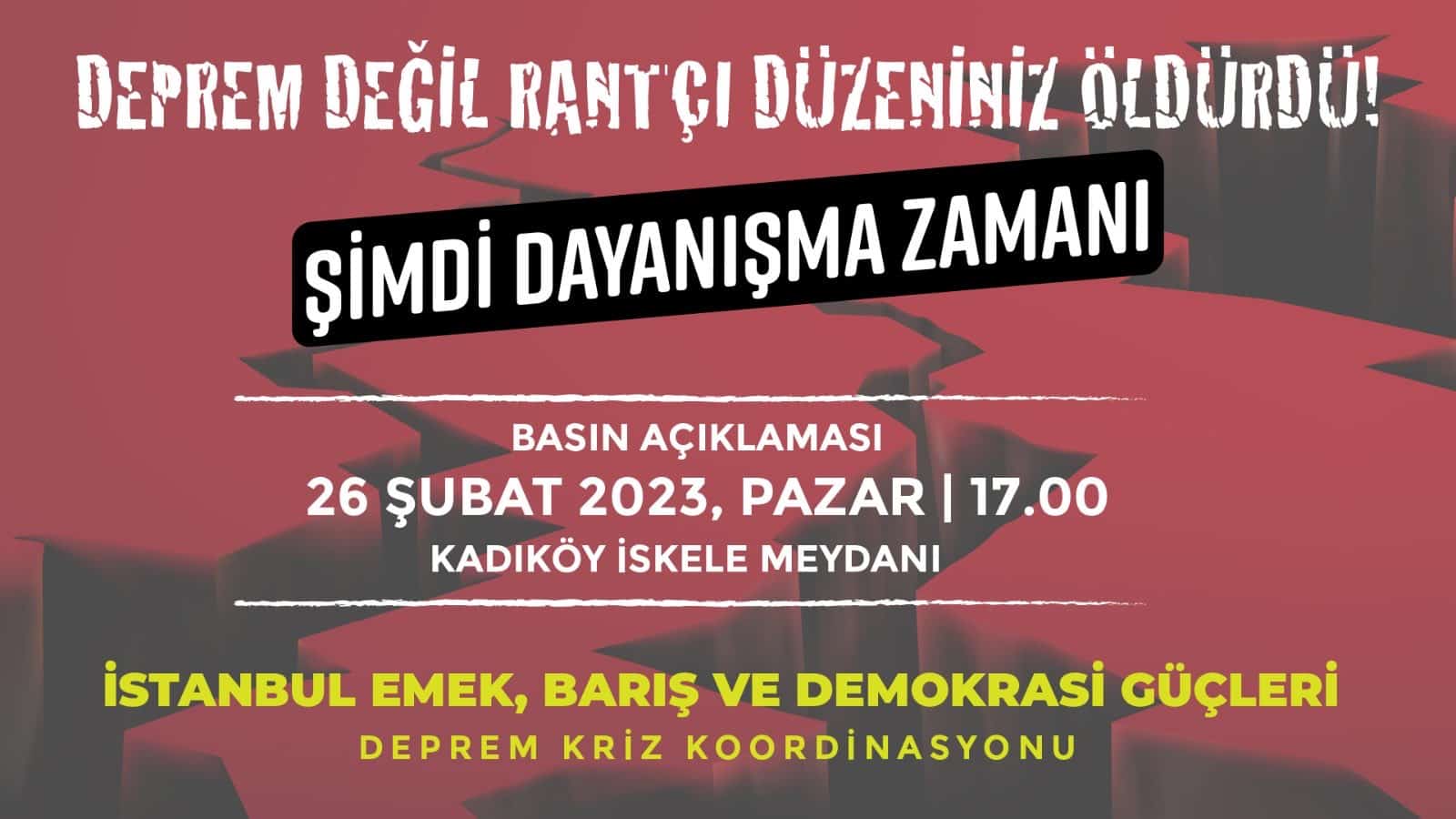 İSTANBUL- Partizan, yarın (26 Şubat) saat 17.00’de Kadıköy’de gerçekleştirilecek deprem eylemine çağrı yaptı.
