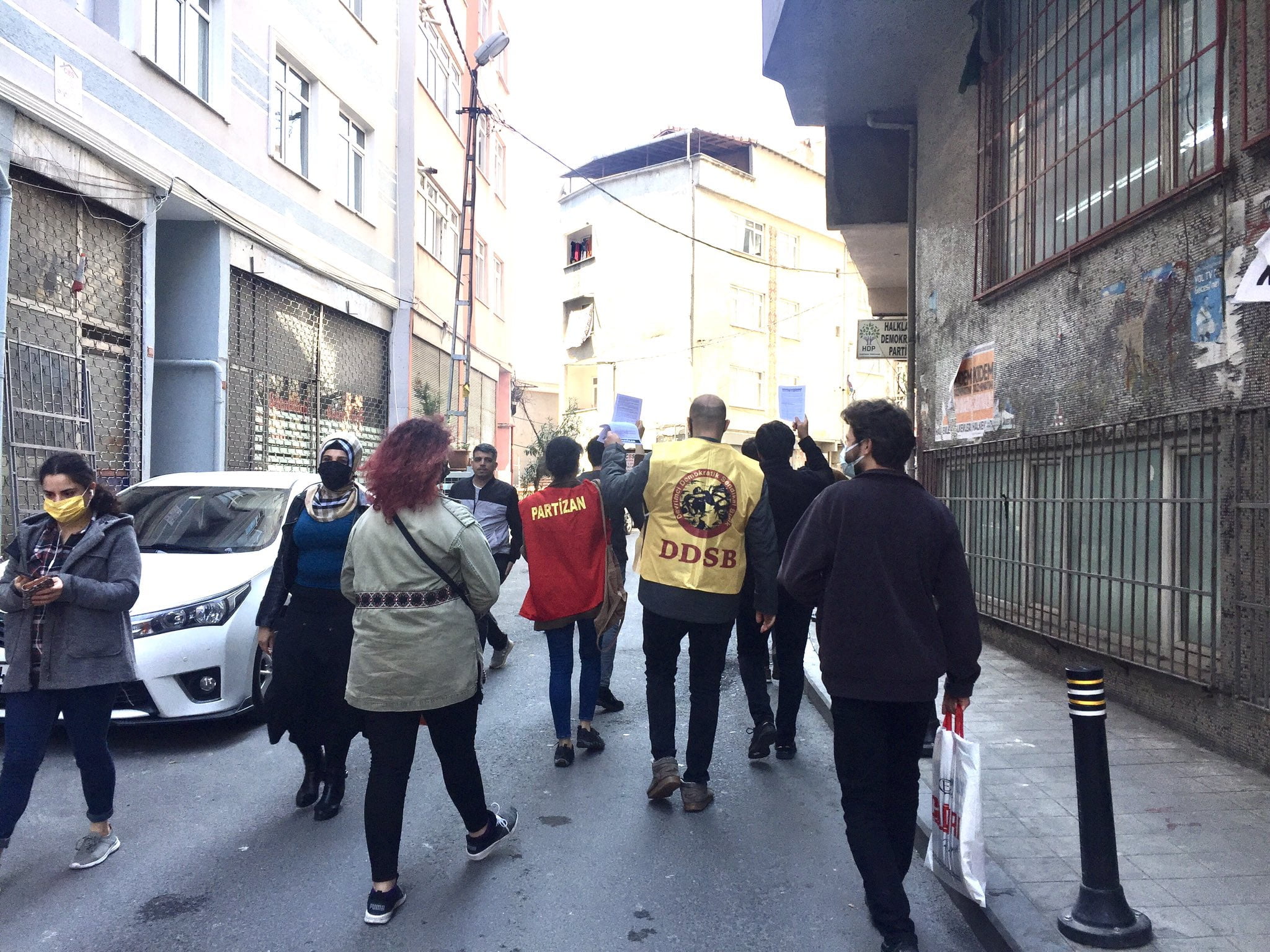 Okmeydanı’nda tekstil atölyeleri, esnaflar ve parklar ziyaret edilerek burada 1 Mayıs çağrılarında bulunan Partizan okurları sesli ajitasyonlarla pandemi gerekçeli 1 Mayıs yasaklarının işçiler önlemsiz çalışırken alınmadığını, ölümüne üretimin sürdüğünü belirterek yan yana çalışan işçilerin mücadele gününün yasaklanmasını tanımayacaklarının altını çizdiler.