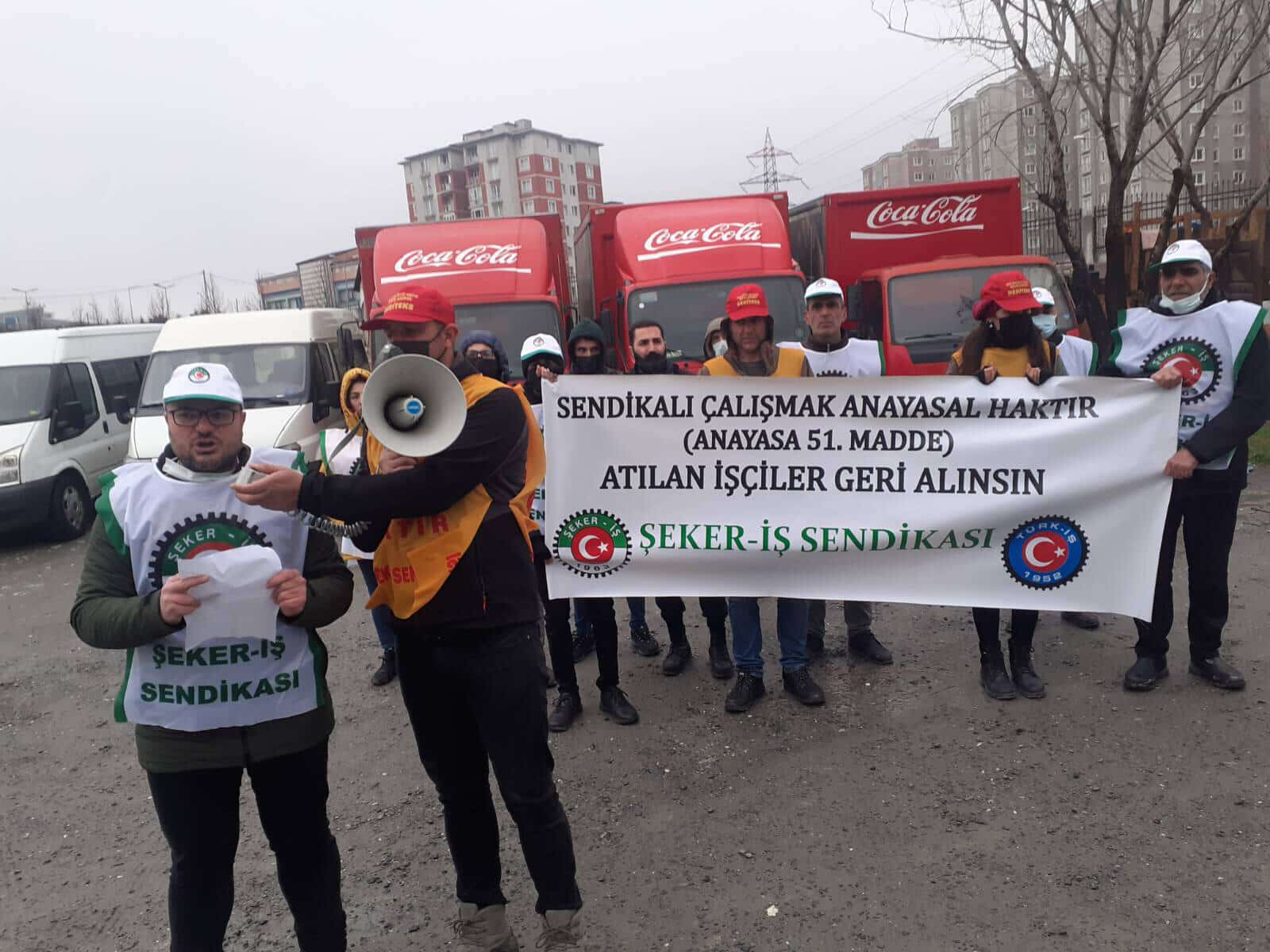 Şeker-İş Sendikası’nın örgütlenme faaliyetlerini sürdürdüğü Piya Meşrubat önünde basın açıklaması gerçekleştirildi. Şeker-İş adına okunan basın metninde, “Birçok sektörde işçi arkadaşlarımız, sendikalı çalışmak istedikleri ya da ücretlerinde kendilerine dayatılan sefalet zamlarına karşı durdukları için işverenler tarafından işten atılmaktadır.