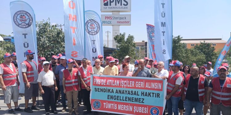 Kısa süre önce Mersin Serbest Bölgesinden Mersin 1. Organize Sanayi bölgesine taşınan fabrikanın işçileri TÜRK-İŞ’e bağlı TÜMTİS’e üye oldular. Sendikanın işyerinde çoğunluğu sağladığı, 06 Ağustos 2025 tarihli Çalışma Bakanlığı yazısıyla belgelendi. Ancak PMS patronu Özgür Güler işçilerin sendika hakkını tanımayarak 12 işçiyi işten çıkarttı.