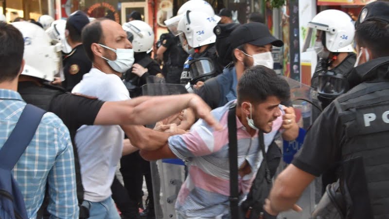 HABER MERKEZİ- İstanbul ve İmir’de Suruç’ta katledilenleri anmak için yapılan etkinlik ve yürüyüşlere polis saldırdı. Polisin plastik mermi ve kalkanlarla gerçekleştirdiği ve birçok kişiyi yerlerde sürükleyerek darp ettiği saldırılarda aralarında gazetecilerin de olduğu birçok kişi gözaltına alındı, fenalaşanlar ve yaralananlar oldu.