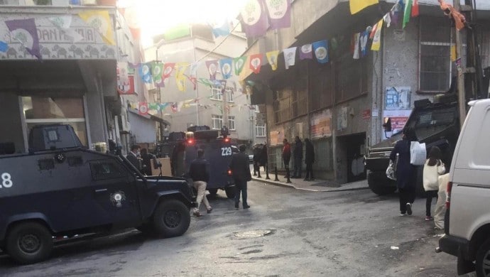 HDP temsilciğinin kapsını zırhlı araçlarla kapatan polis, içeri girmek isteyenleri didik didik aradı.