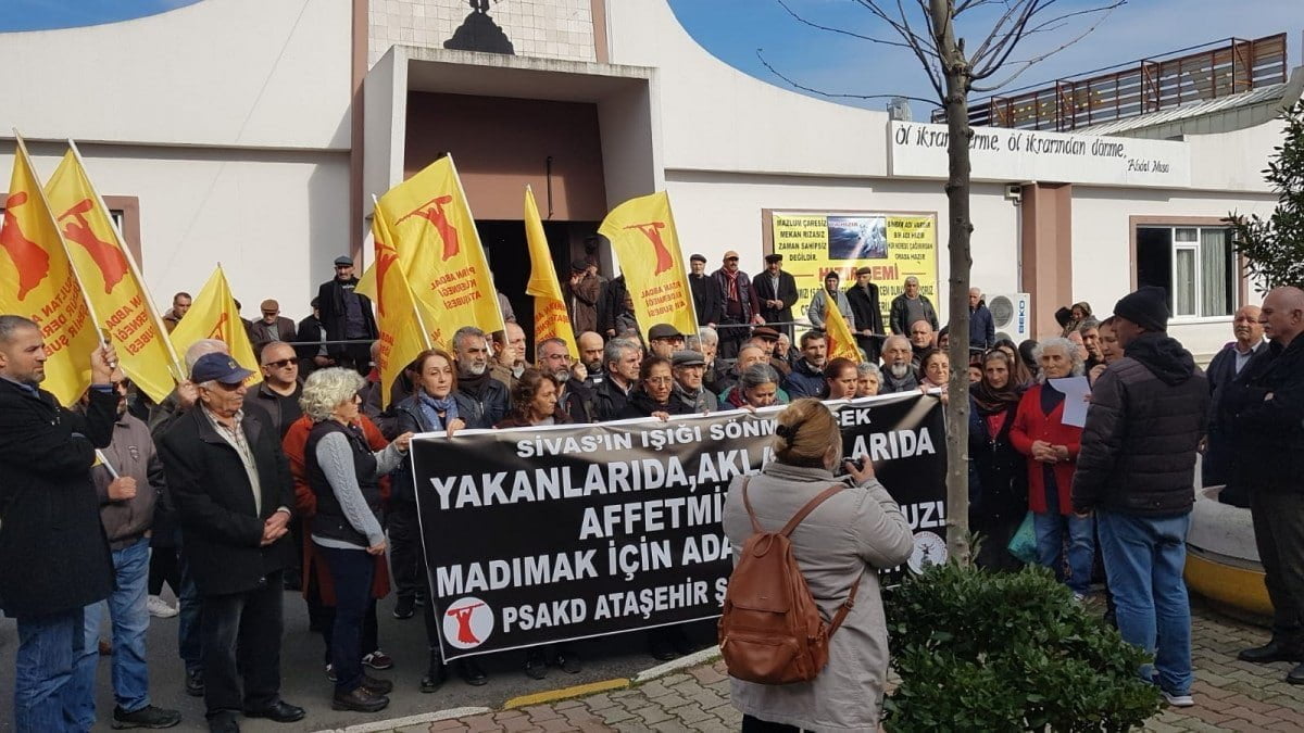 HABER MERKEZİ- Madımak Katliamı hükümlüsünün Cumhurbaşkanı Erdoğan tarafından af edilmesine, Pir Sultan Abdal Kültür Derneği (PSAKD) Ataşehir Şubesi önünde yaptığı açıklama ile tepki gösterdi.