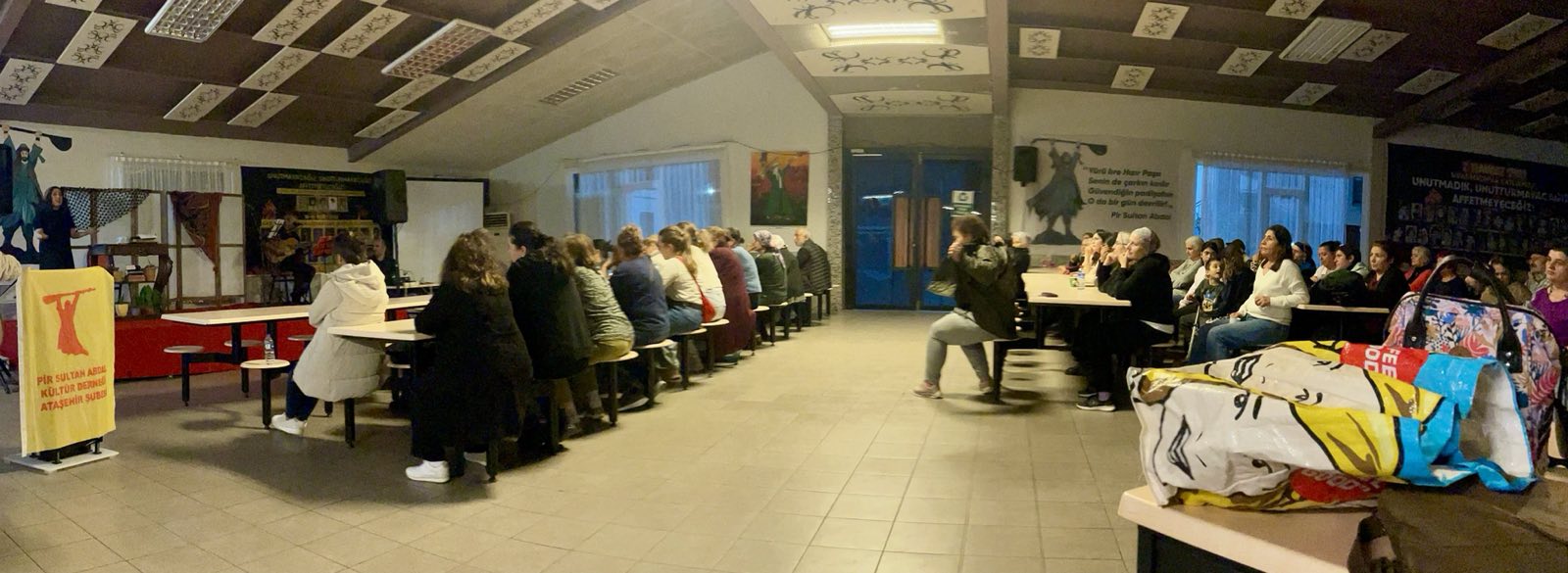 İstanbul’da 1 Mayıs Mahallesi’nde “Bir Kadının Sesi Bin Yıllık Sessizliği Bozar” şiarıyla bir araya gelen kadınlar, 25 Kasım Kadına Yönelik Şiddete Karşı Mücadele Günü vesilesiyle Pir Sultan Abdal Ataşehir Kültür Merkezi’nde buluştu. Etkinlik kapsamında, kadın şair Gülten Akın’ın anısına sahnelenen Tiyatro Sel yapımı “Deli Kızın Türküsü” adlı tek kişilik oyun, mahalleli kadınların yoğun ilgisiyle izlendi.