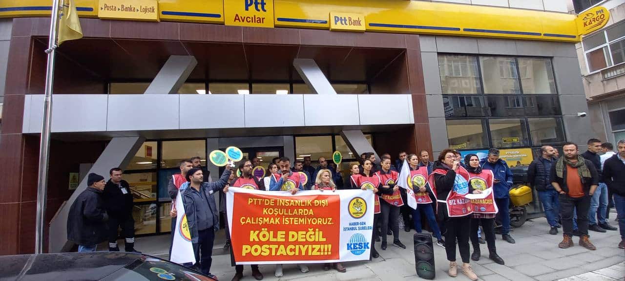 PTT'deki hukuksuz uygulamalar ve tehditlere karşı PTT emekçileri Sirkeci, Avcılar ve Şişli'de basın açıklaması gerçekleştirdi.