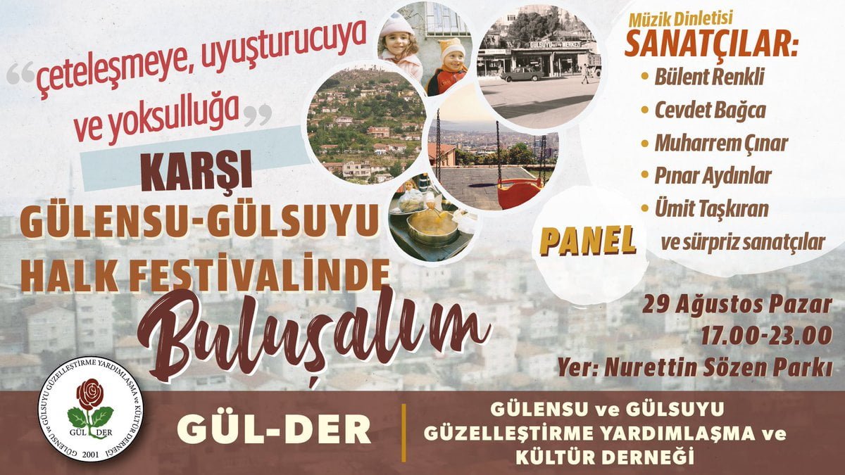 İstanbul’un Maltepe ilçesinde yer alan Gülsuyu Mahallesi 29 Ağustos’ta düzenlenecek festivale hazırlanıyor. Devletin rantsal dönüşüm, çeteleşme ve uyuşturucu saldırılarına yıllardır direnen Gülsuyu Mahallesi tüm Gülsuyu halkını 29 Ağustos’ta düzenlenecek festivale davet ediyor.