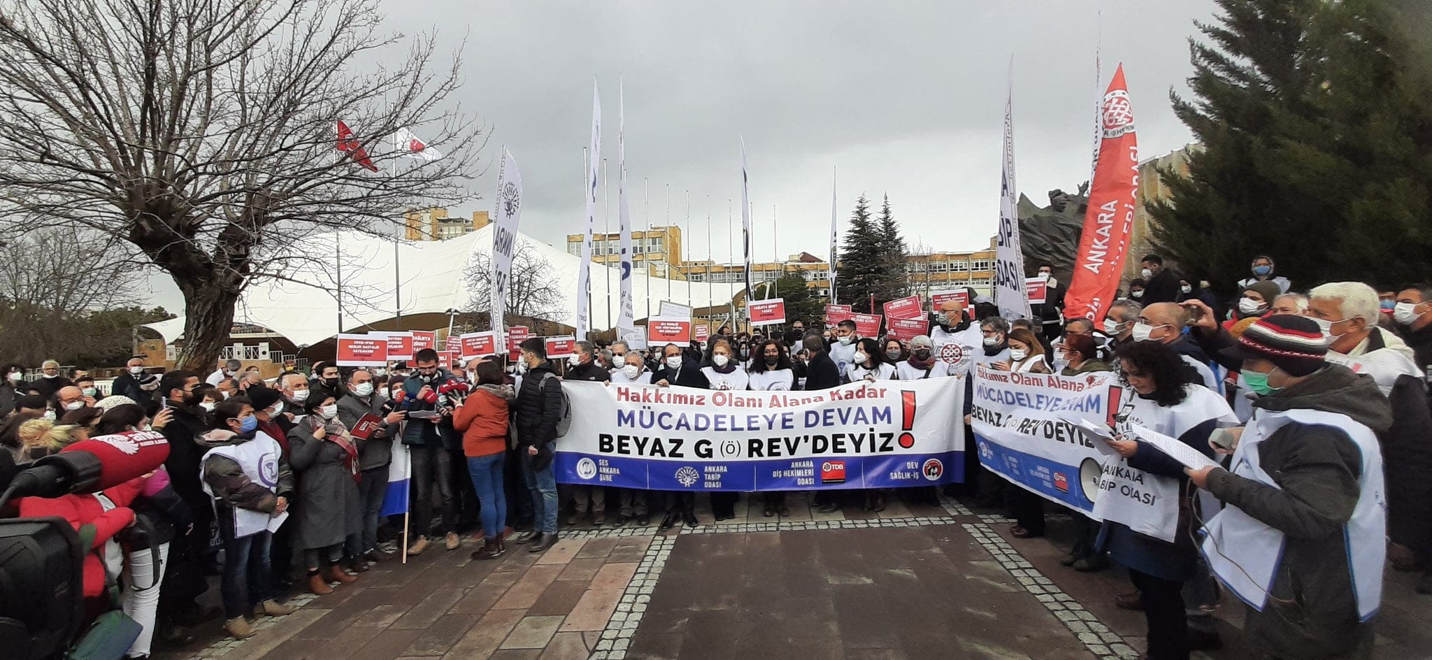 TTB, 15 Aralık’ta bu durumu protesto etmek için “G(ö)REV” adını verdiği iş bırakma eylemini gerçekleştirmişti. Daha sonra düzenlemenin Meclis’e getirilmesi için ‘Beyaz Nöbet’ eylemi başlatan TTB, bu eylemden de sonuç alamamıştı.