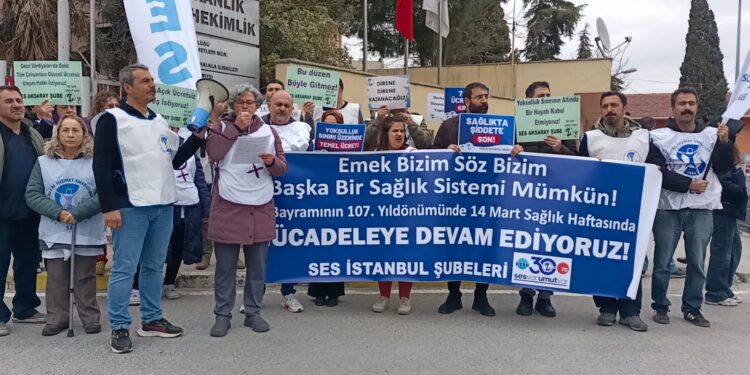 Sağlık ve Sosyal Hizmet Emekçileri Sendikası (SES) İstanbul Aksaray Şubesi’nin “Emek Bizim Söz Bizim, Başka Bir Sağlık Sistemi Mümkün” çağrısıyla sağlık emekçileri İstanbul Üniversitesi Çapa Tıp Fakültesi önünde bir araya geldi. Sağlık hizmetlerinin piyasalaştırılmasına, hastaların “müşteri” olarak görülmesine, ağır çalışma koşullarına ve düşük ücretlere tepki gösterilerek basın açıklaması okundu.