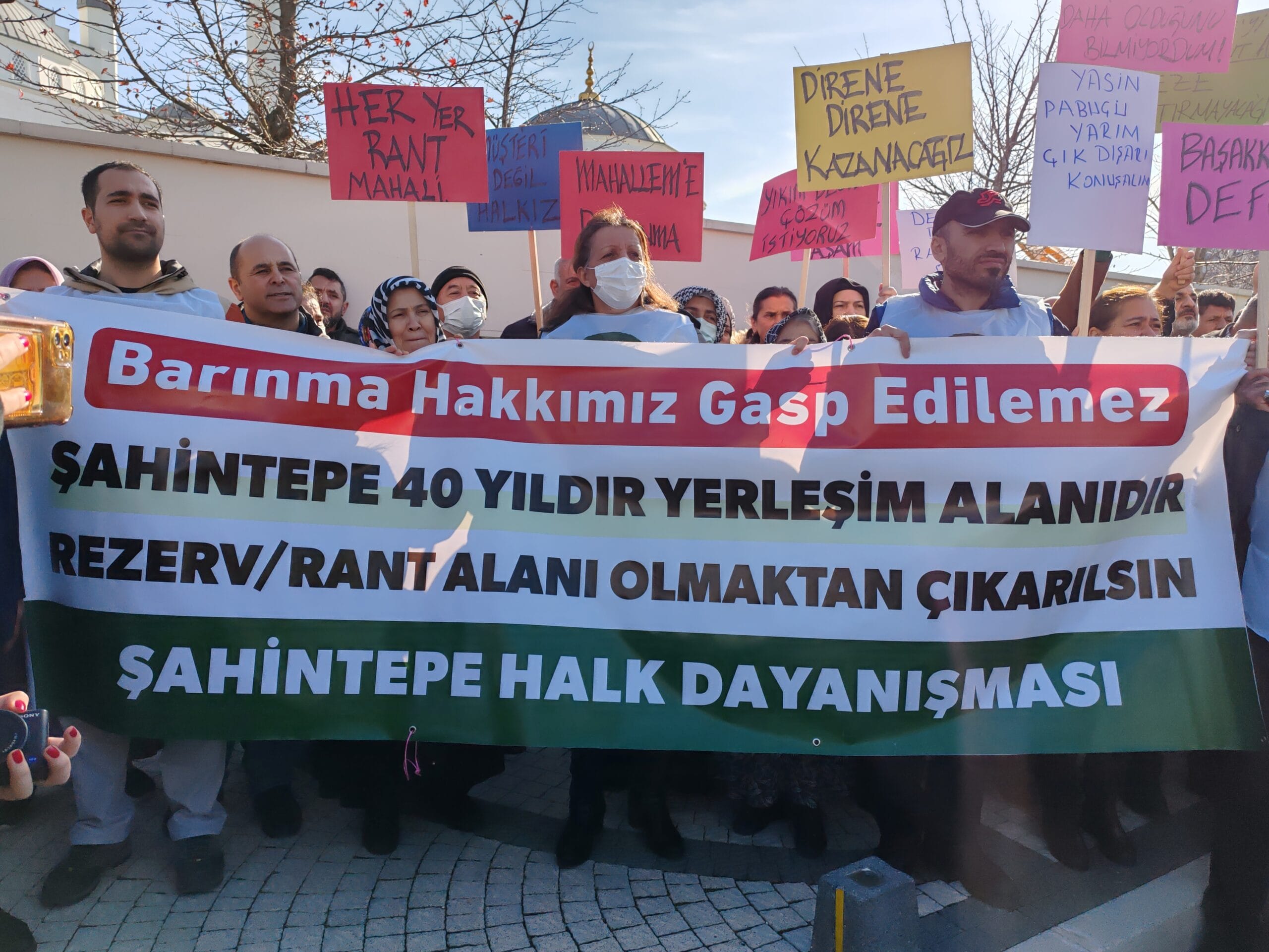 Şahintepe halkı rantsal dönüşüm projesine karşı bir araya gelerek Başakşehir Belediyesi önünde basın açıklaması gerçekleştirdi.