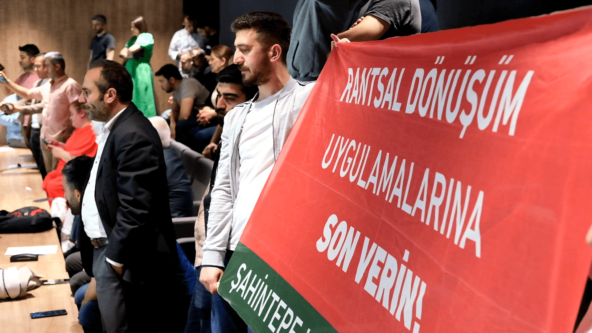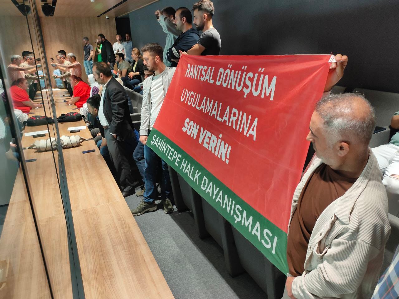 İstanbul Başakşehir’e bağlı Şahintepe Mahallesi’nde yaşayanlar, belediye meclis toplantısına katılarak rantsal dönüşüm uygulamalarını protesto etti.