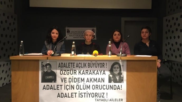 TAYAD’lı aileler adına açıklama yapan Zeynep Karakoç, Didem Akman ve Özgür Karakaya’nın 19 Şubat’ta ölüm orucuna başladığını belirterek, “Adaletsizlik var oldukça, adalet için direnenler de var olacaktır. Ülkemizde halkımız madenlerde, işçi katliamlarında, tren kazalarında, göçüklerde can veriyor. Mahkemelerde adalet değil, halkımıza zulüm dağıtılıyor. Kanıt, delil olmaksızın ağırlaştırılmış müebbet hapse varan cezalar veriliyor” dedi.