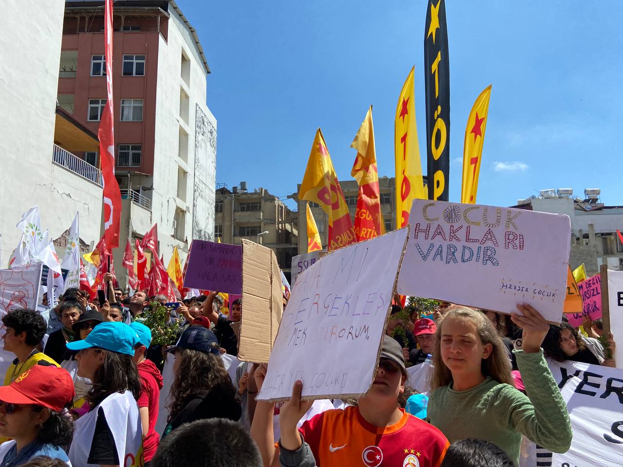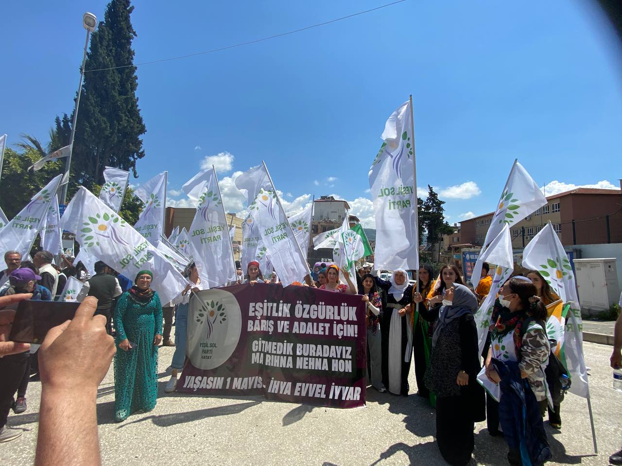 1 Mayıs Birlik, Mücadele Dayanışma gününde Samandağ 1 Mayıs Tertip Komitesi’nin çağrısıyla yürüyüş gerçekleştirildi. Komitenin “Unutmayacağız, Affetmeyeceğiz, Hesap Soracağız!” ve “Ma Rıhna Nıhna Hon” şiarıyla örgütlediği yürüyüşte Partizan, Pir Sultan Abdal Kültür Derneği, çevre ve dayanışma dernekleri, birçok siyasi kurum ve çocukların yer aldığı binler katıldı. Samandağ Belediyesi önünde oluşturulan kortejler miting alanına kadar sloganlarla yürüdü.