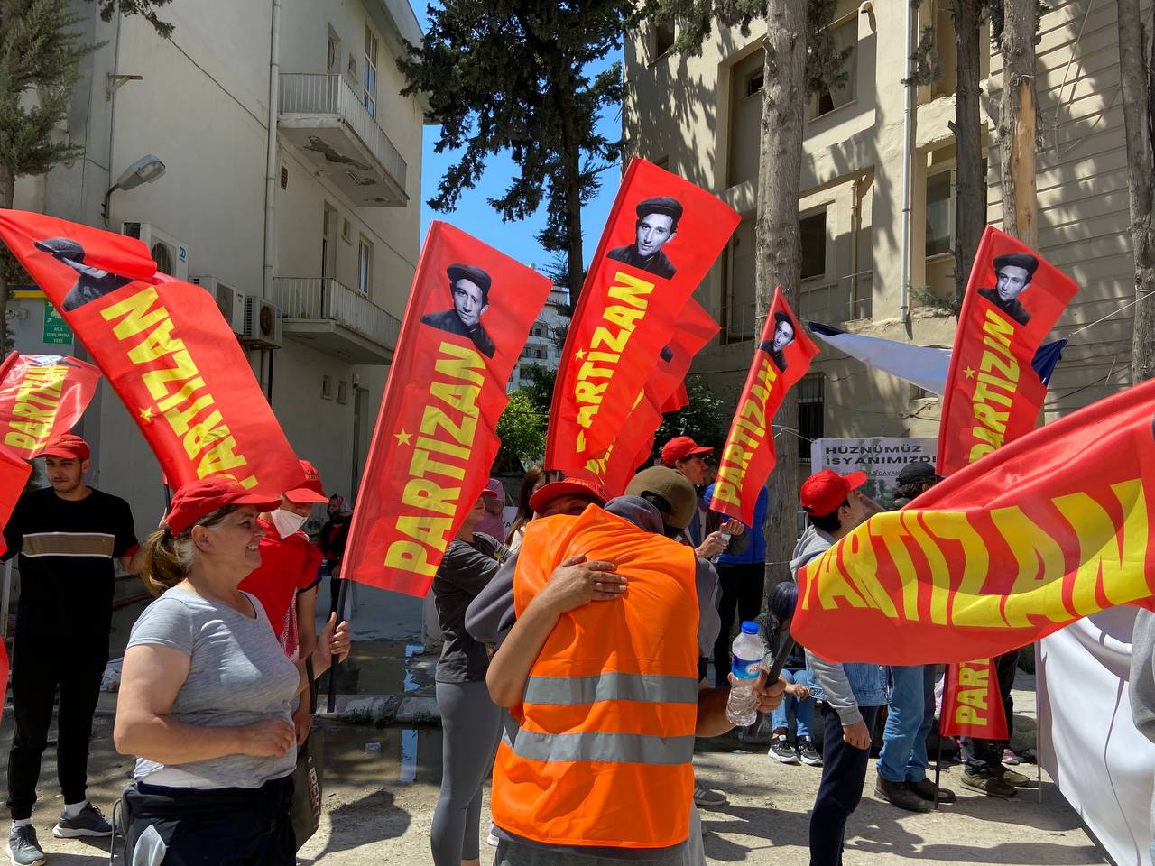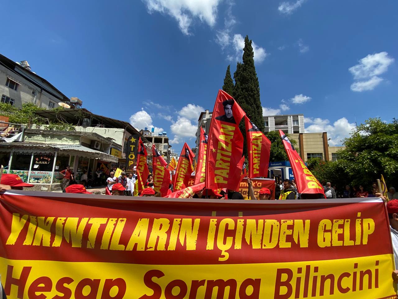 Partizan okurları İstanbul'daki saldırıları teşhir ederek, dayanışma sloganları attı. Partizan korteji "Faşizme İsyan Halka Önder Partizan" sloganlarıyla yürüyüşe geçti. pic.twitter.com/Wo1731aqBy— Yeni Demokrasi (@YDemokrasi11) May 1, 2023