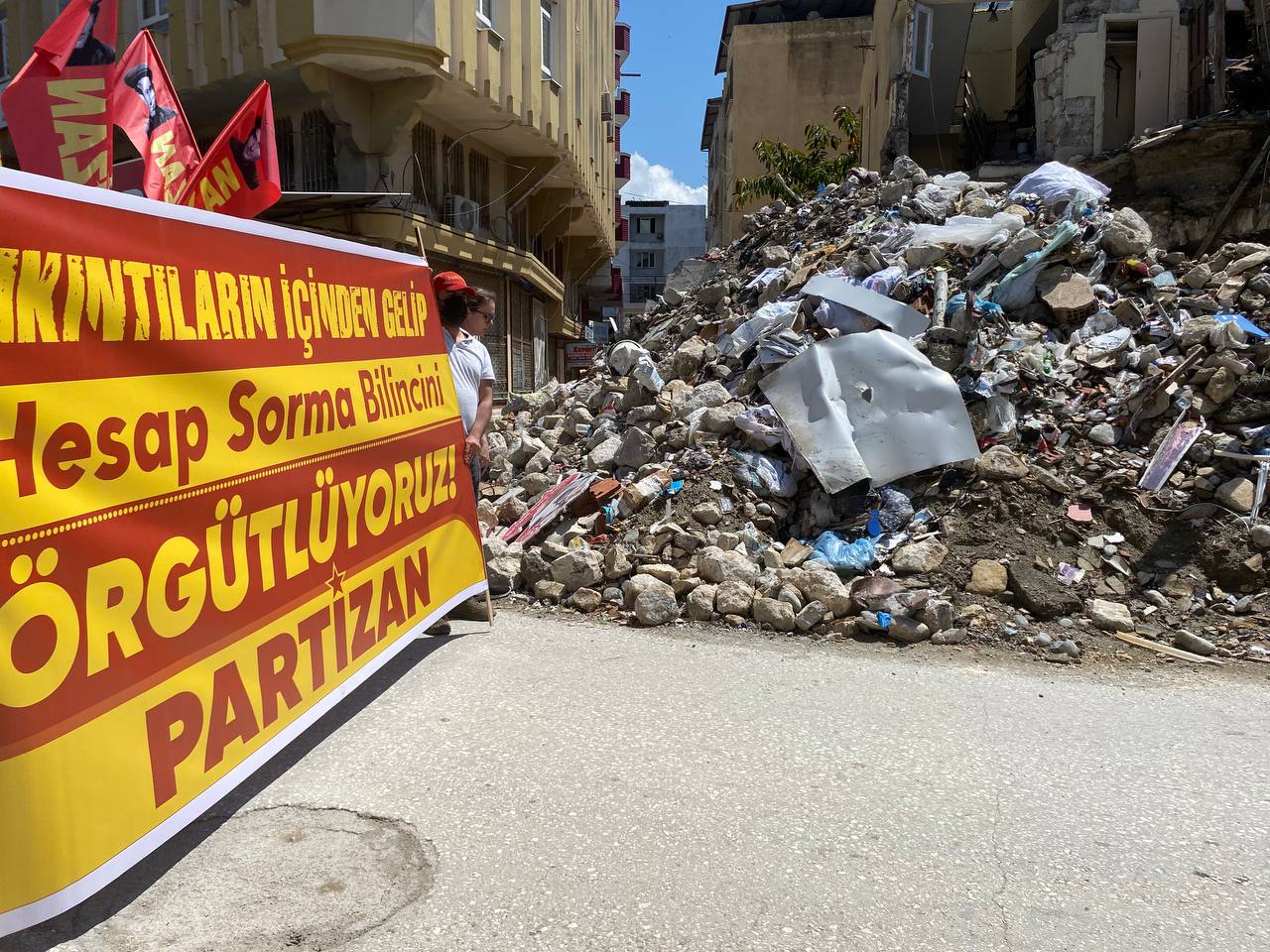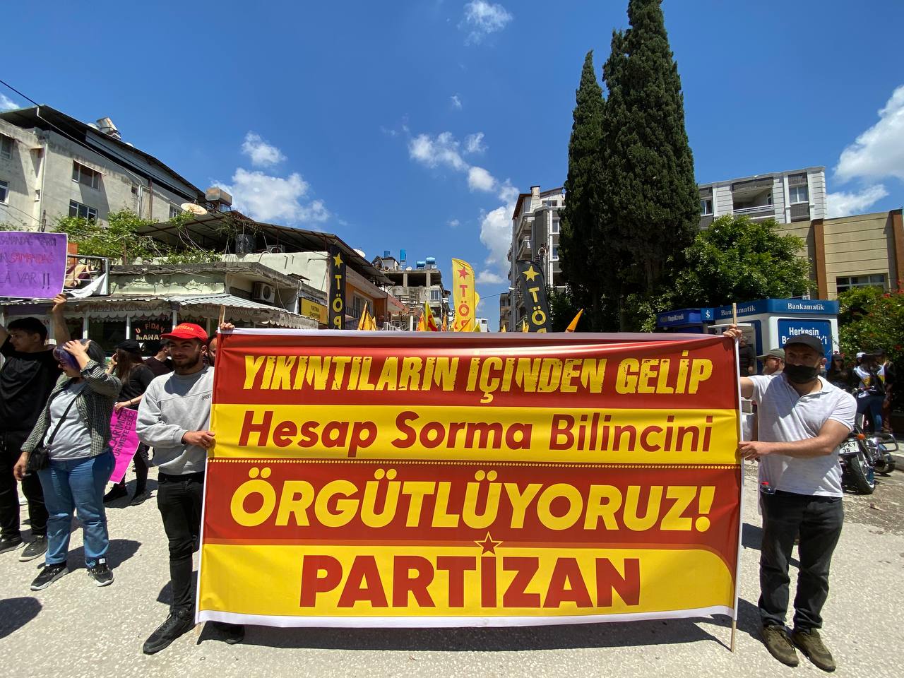 Sabah saatlerinde İstanbul’da İbrahim Kaypakkaya siluetli flamalar gerekçe gösterilerek Partizan okurlarına gerçekleştirilen gözaltı saldırısı Samandağ’da teşhir ve protesto edildi. Yürüyüşe “Yıkıntıların İçinden Gelip Hesap Sorma Bilincini Örgütlüyoruz” pankartıyla katılan Samandağ’daki Partizan okurları yürüyüş boyunca “Faşizme İsyan Halka Önder Partizan”, “İbo Haydar Zülfikar Namludadır İktidar”, “Önderimiz İbrahim, İbrahim Kaypakkaya” sloganları attı. Partizan tarafından yaşanılan ve yaşanılacak sorunların Halk Savaşı güzergâhıyla bertaraf edileceğinin öne çıkartıldığı yürüyüşte Önder Yoldaş İbrahim Kaypakkaya’nın yoluna sıkı sıkı sarılanacağı bir kez daha gür sesle haykırıldı.