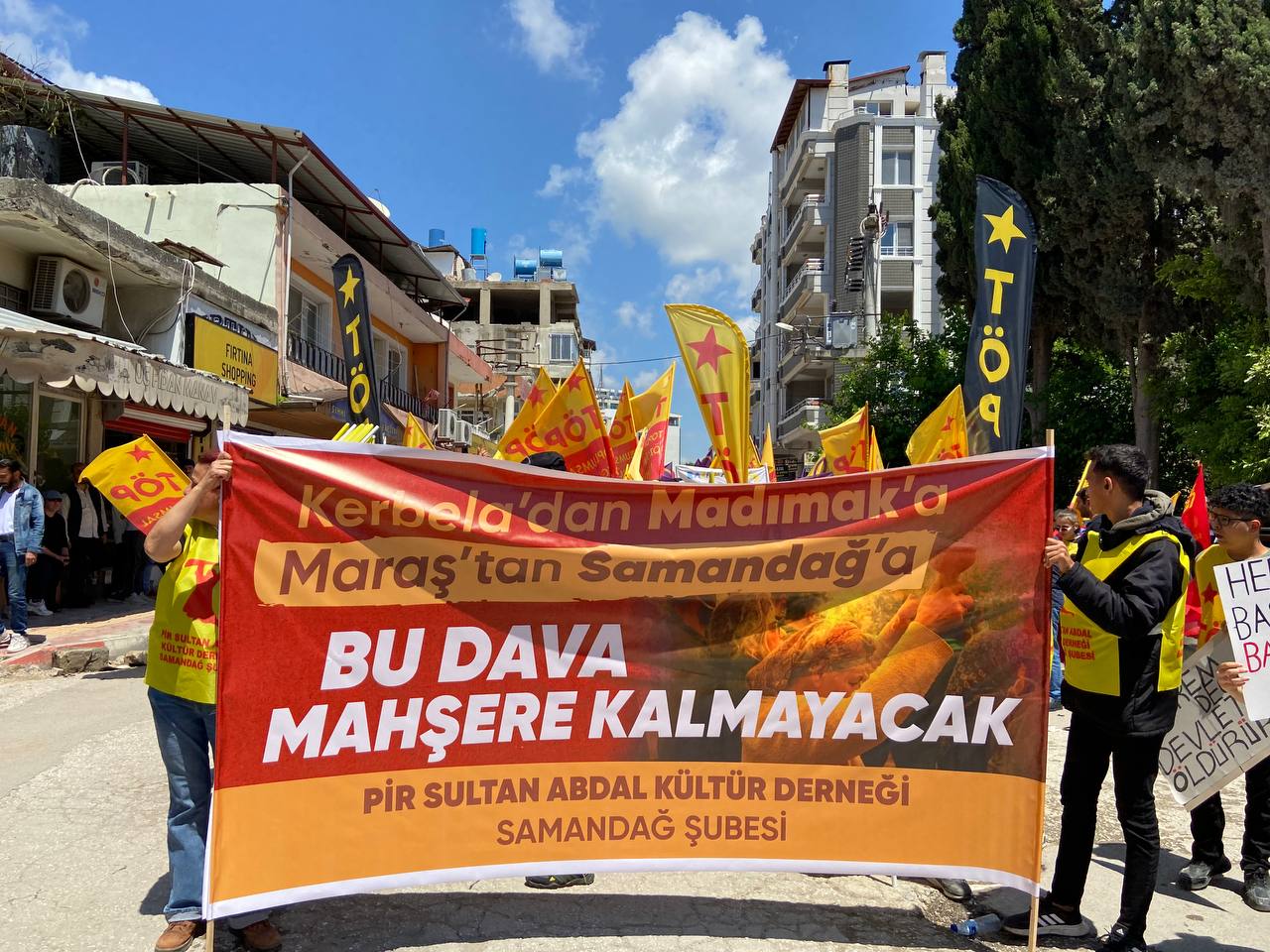“Kerbela’dan Madımak’a Maraş’tan Samandağ’a Bu Dava Mahşere Kalmayacak” pankartıyla yürüyüşe katılan PSAKD, devletin Alevisi olmayacaklarını, Maraş’tan Samandağ’a enkaz yaratanlardan hesap soracaklarını tekrar tekrar seslendirdi. Alevi halkına yönelen faşist saldırıların örgütlü mücadele ile bertaraf edileceğini ifade eden kortej alanlarda, mücadelede ve inşada olacaklarını belirtti.