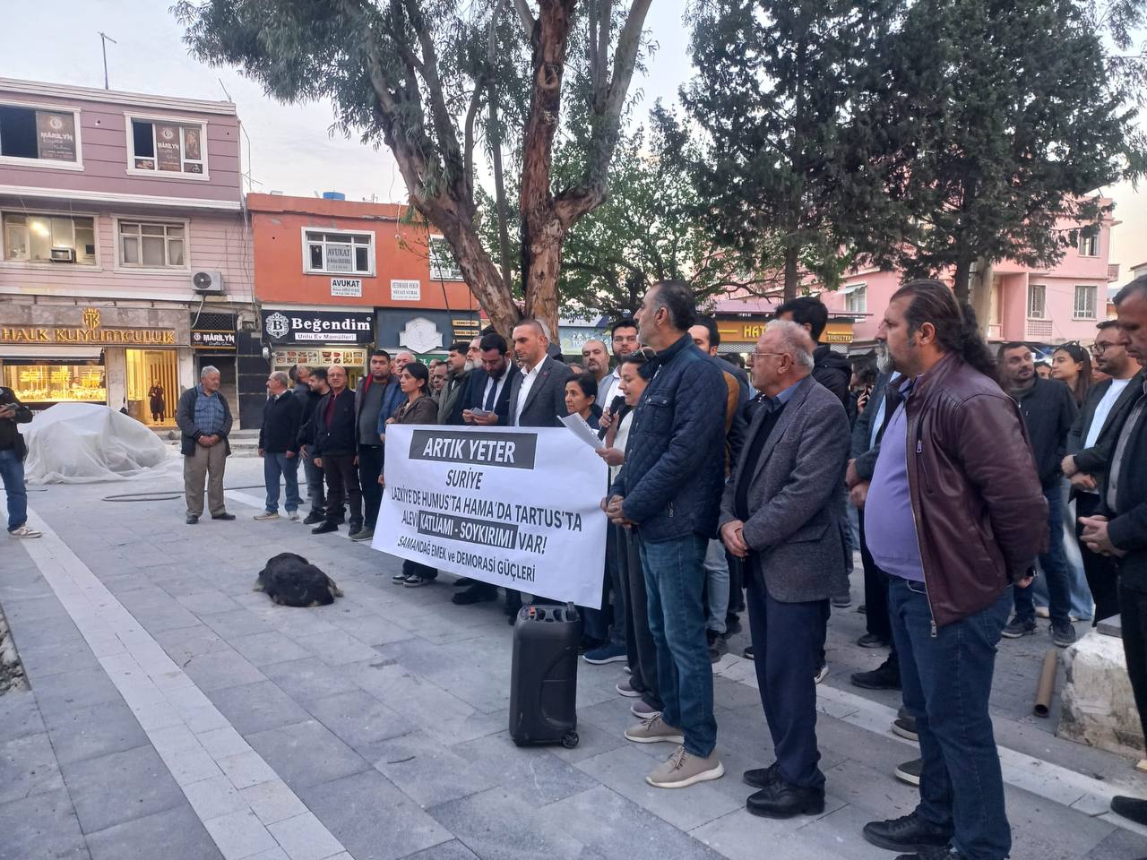 Samandağ Emek ve Demokrasi Güçleri adına basın açıklamasını Cansel Aslan okudu. Aslan, bu saldırının “halkları birbirine düşürmeyi amaçlayan açık bir imha girişimi” olduğu belirti. Suriye’de Alevilere yönelik şiddet ve katliam politikalarının derinleşmesinde “AKP iktidarının ve uluslararası güçlerin doğrudan rolü” bulunduğunu ifade eden Cansel Aslan, bölgenin yıllardır mezhepsel çatışma iklimine sürüklendiği ve silahlı yapılara verilen desteklerin bu zemini beslediğini kaydederek, “Bu katliamın karşısında susmak, suçlulara cesaret vermektir” dedi.