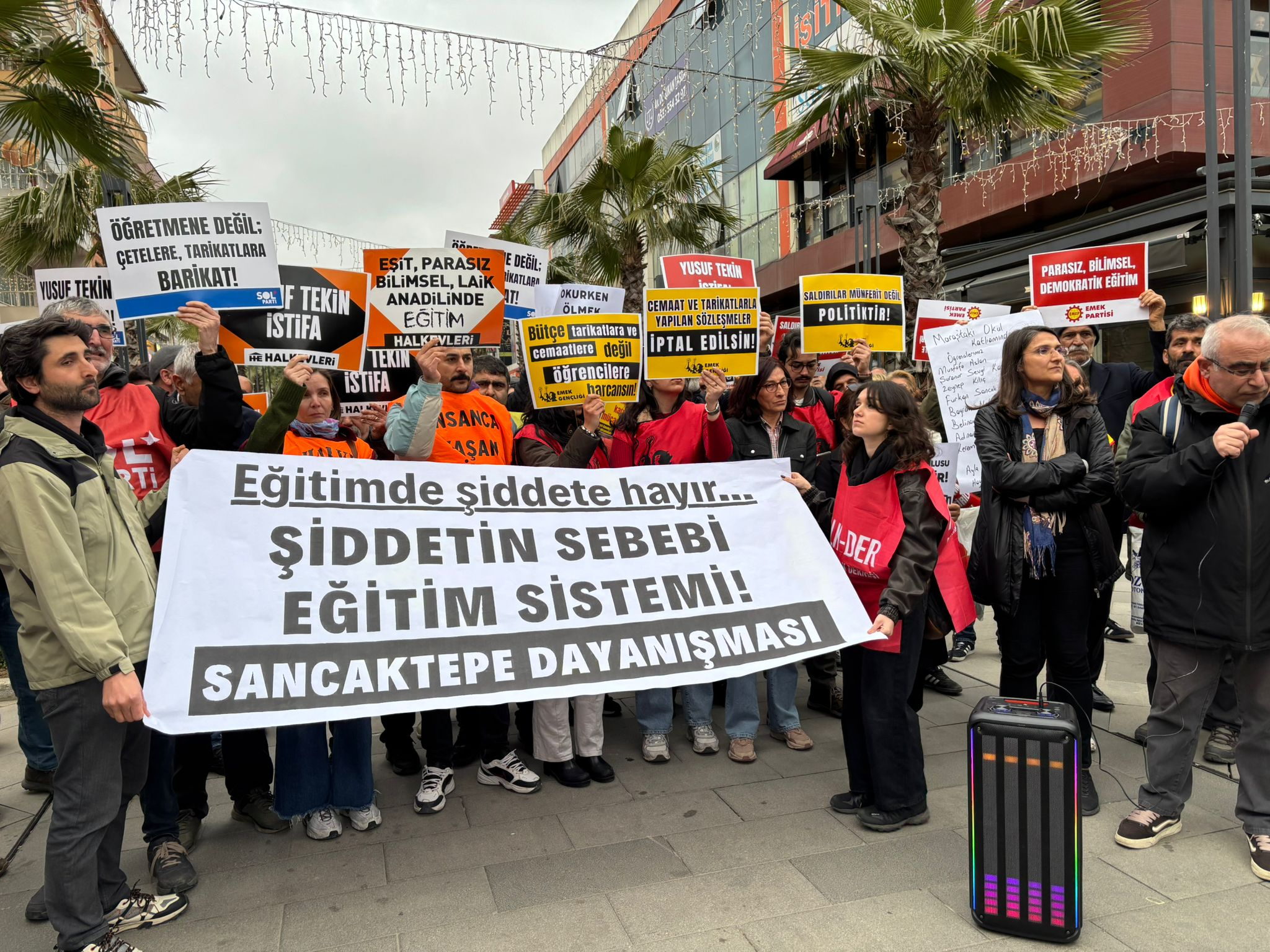 Eylem boyunca kitle, okullarda yaşanan olayların sorumlusu olarak “İstifa” sloganlarıyla Yusuf Tekin’i işaret etti. Yapılan açıklamalarda, eğitim alanının ticarethane, gerici ve bilimden uzak politikalarla bilinçli biçimde çürütüldüğü; bu çürümenin ise şiddeti, güvencesizliği ve eşitsizliği büyüttüğü vurgulandı.