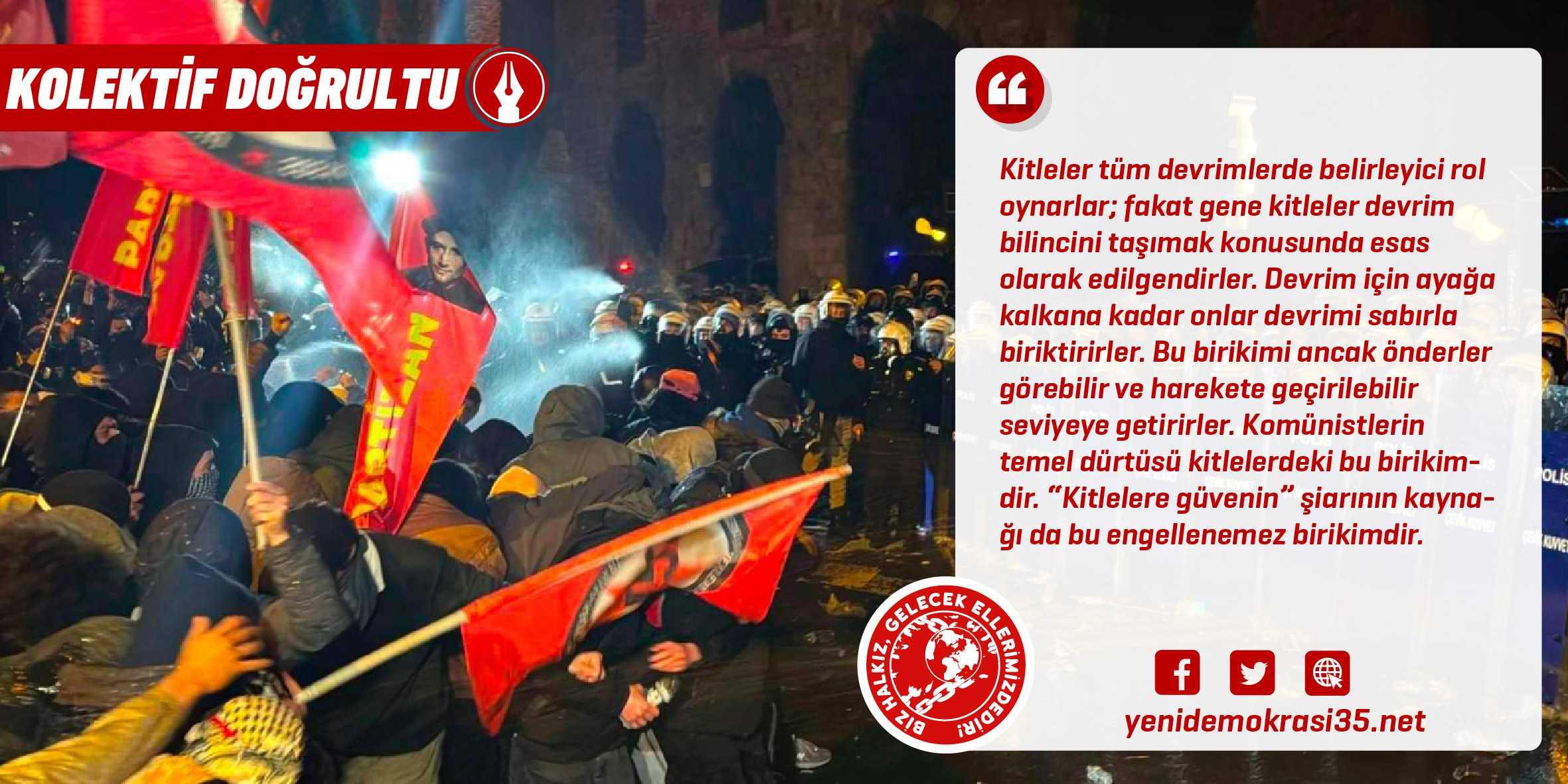 İstanbul Belediye Başkanına yönelik üniversite diplomasının iptal edilmesiyle başlayan ve yargı müdahalesi ile devam eden “egemenler içi klik dalaşı” bir anda kitlelerin, özel olarak üniversite öğrencilerinin “varlığına” saldırı olarak algılanıp genişledi. Klik dalaşı olarak devam eden süreç kitlelerin uzun zamandır biriken öfkesinin patlamasıyla başka bir boyut kazandı. Bu aşamadan sonra kitlelerin talepleri, eylemi, öfkesi, hareketi gündemin esası oldu. Bizim de süreci kavrayışımız bu gelişmeyle birlikte yeni bir biçim aldı. Genel olarak klikler arası, AKP-MHP ortaklığından beri ise bloklar arası dalaş olarak değerlendirdiğimiz bu sürecin kitlelerin öfkesiyle birleşmesi bizim için yeni bir durumdu. Kitlelerin dahil olduğu bu süreçte “herhangi bir egemen kliğin tarafında” olmamak adına sürecin dışında kalmak kitlelere rağmen bir tavır anlamına geleceğinden hızla bu tutum terk edildi. Saraçhane’de büyüyen kitle eylemine bu anlayışla katıldık. Bir kez daha açık ve net bir biçimde klikler arası dalaştan halk lehine bir sonuç çıkmayacağını, yalnızca halkın çıkarlarını içeren ve halkın yöneliminin devrimci özünden beslenen hareketin sonuç verici olabileceğini bu tavrımızla savunmuş olduk. Bunun bizim için özel önemde olduğunu sıklıkla vurguluyoruz. Çünkü halk kitlelerinin devrimci eğilimi karşısında tüm egemenler ve oportünistler özellikle bu noktayı manipüle ederler. Halkların devrime gebe çıkarları ve hareketi egemenler tarafından sınırlandırılır ve genel olarak ezilir.