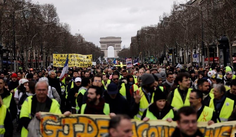 Fransa’da 17 Kasım 2018 tarihinde hükümetin birbiri ardına açıkladığı vergi artışlarına akaryakıt vergilerini de eklemesi üzerine sosyal medya üzerinden bir imza kampanyası yayınlayan Priscilla Ludosky’nin çağrısı insanları sokağa döktü. Son derece doğaçlama bir şekilde, 282 bin Fransız, otomobillerde bulunması zorunlu olan ve herkesin kolaylıkla ulaşabileceği sarı güvenlik yeleğini giyerek sokağa çıktı. Genç, yaşlı, kadın erkek, alt/orta sınıf her kesimden Fransız, hükümeti protesto etti.