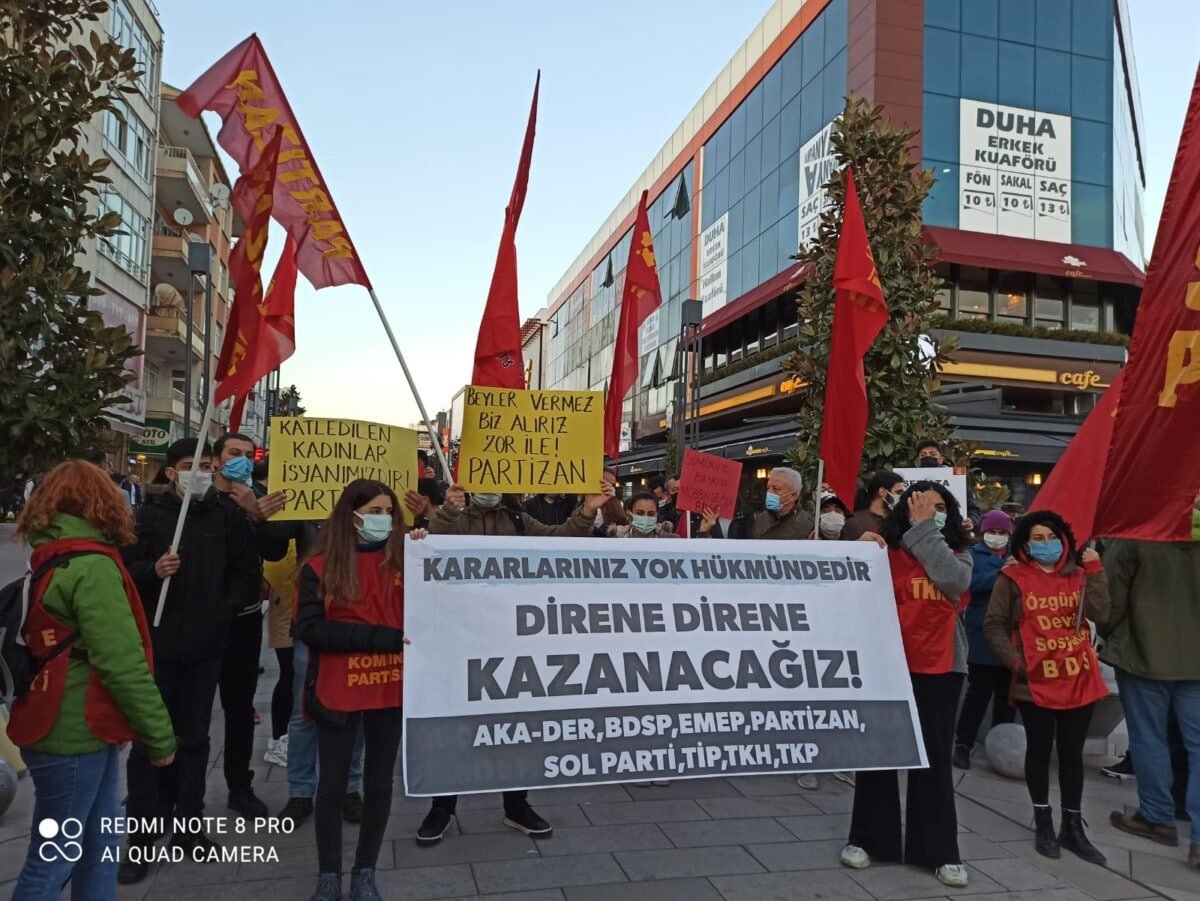 AKA-DER, Partizan, BDSP, EMEP, SOL PARTİ, TİP, TKH, TKP’nin örgütlediği basın açıklamasında “AKP’nin 18 yıllık iktidarı boyunca kadına yönelik şiddetin, ayrımcılığın, şiddetin arttığı” vurgulandı. Baskı ve sömürü politikalarını arttırarak Sözleşmeden çıkmak için “beka” uğruna tam bir topyekûn saldırı başlattığı aktarıldı. Açıklamanın devamında şunlar vurgulandı:
