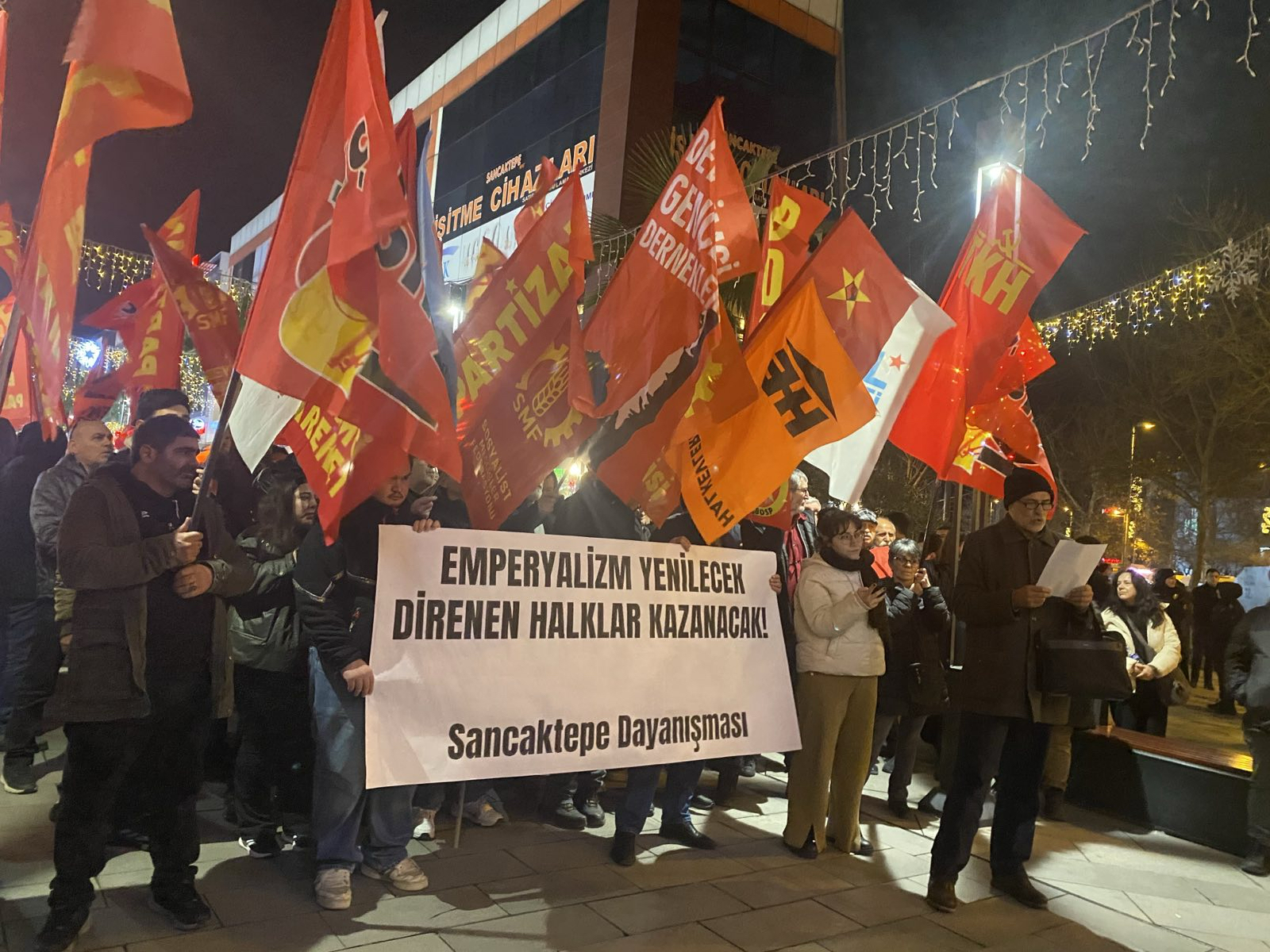 Partizan’ın da bileşeni olduğu Sancaktepe Dayanışması Sarıgazi Demokrasi Meydanı’nda bir araya geldi. “Emperyalizm Yenilecek, Direnen Halklar Kazanacak” pankartı açılan eylemde ABD emperyalizminin saldırıları protesto edildi.