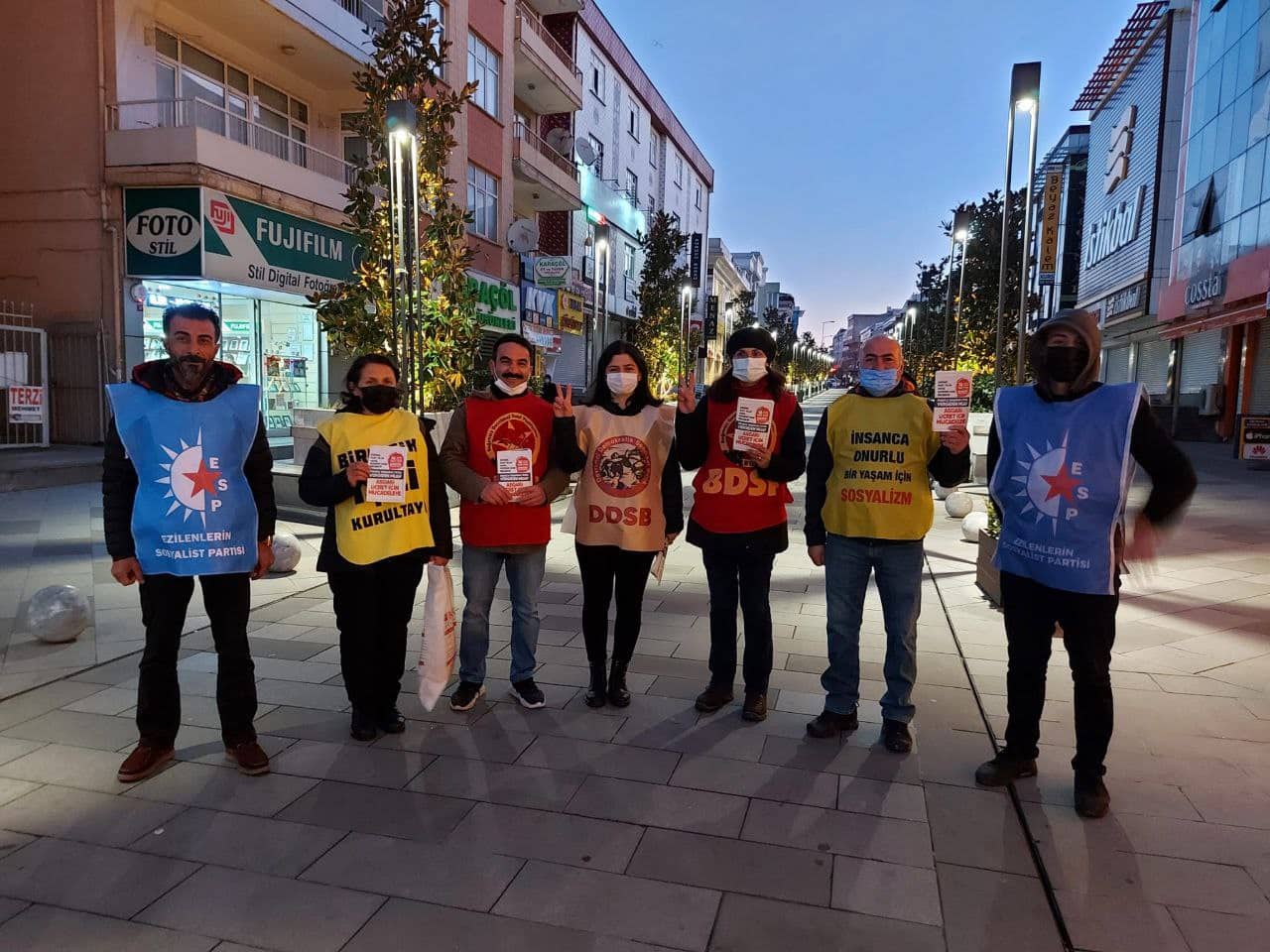 Bağımsız Devrimci Sınıf Platformu (BDSP), Kaldıraç, Devrimci Demokrat Sendikal Birlik (DDSB), Ezilenlerin Sosyalist Partisi (ESP), Kaldıraç ve Birleşik İşçi Kurultayı sabah saatlerinde bir araya gelerek asgari ücrete karşı mücadele çağrısında bulundular. Bildiri dağıtımı sırasında gelen polisler GBT bahanesi ile bildiri dağıtanları taciz etti.
