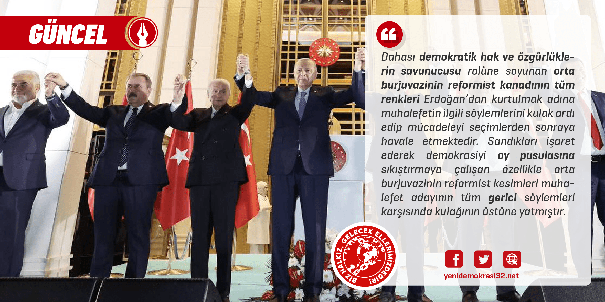 Emekçi halk kitlelerine sırtlarında tepinecekleri yeni egemenler seçmeleri için değil kendileri gibi olanlarla birleşip kararlılıkla mücadele etme seçeneği dışında gerçek bir kurtuluşun mümkün olmadığını anlatmak zorundayız.
