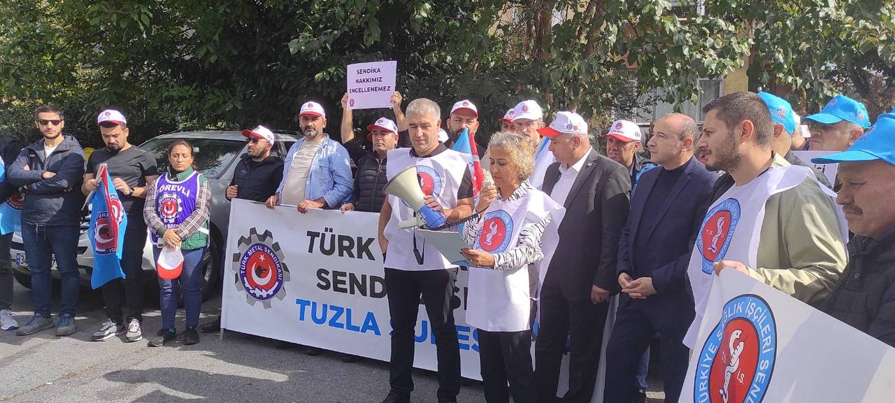 Yıldırım, “Yapmış olduğumuz toplantı, kameralardan tespit edilerek 4 kişinin iş akdinin feshine karar verilmiştir. Birçok arkadaşımız da kınama cezası almıştır. Anayasal haklarını kullanarak sendikaya üye olmuşlardır. MNT’de çoğunluk tespitine itiraz edip aynı hukuksuzlukla Tuğba Çelebi arkadaşımızı işten çıkaran işverene birkaç sorumuz olacak” diyerek patrona sorular yöneltti.