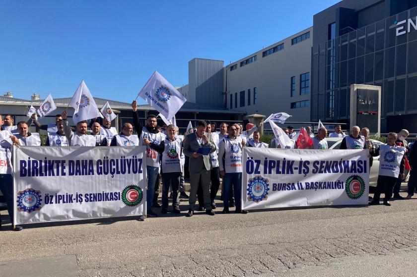 Bursa Demirtaş Organize Sanayi Bölgesinde bulunan Barutçu tekstilde, Öz-İplik İş’e üye olan 4 kadın işçinin işten çıkarılması üzerine işçiler fabrika önünde eyleme başladı.