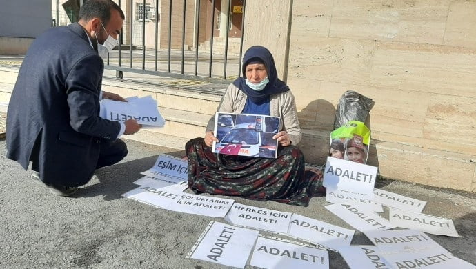 HABER MERKEZİ- AKP Milletvekili İbrahim Halil Yıldız’ın koruma ve yakınlarının 24 Haziran seçimleri öncesi saldırısı sonucu Hacı Esvet Şenyaşar ile çocukları Adil ve Celal Şenyaşar linç edilerek öldürüldü. Aynı aileden Fadıl, Mehmet ve Ferit Şenyaşar ise yaralanırken, Fadıl Şenyaşar, tedavisi devam ederken gözaltına alınıp tutuklandı. Yaşamını yitiren eşi ve oğulları ile tutuklu oğlu Fadıl Şenyaşar için “Adalet” nöbeti başlatan anne Emine Şenyaşar, 6 gündür Urfa Adliyesi önünde oturma eylemi gerçekleştiriyor. Oğlu Ferit Şenyaşar ile Urfa Adliyesi önüne gelen anne Şenyaşar, üzerinde katledilen aile bireylerinin olduğu fotoğraflarla adliye binası önünde oturdu.